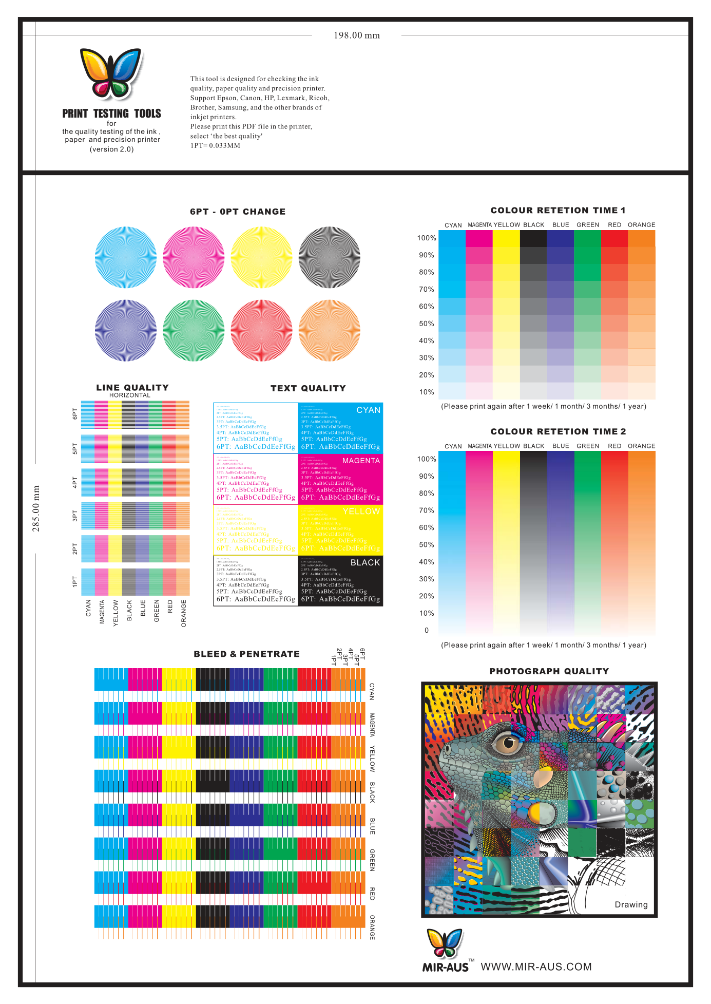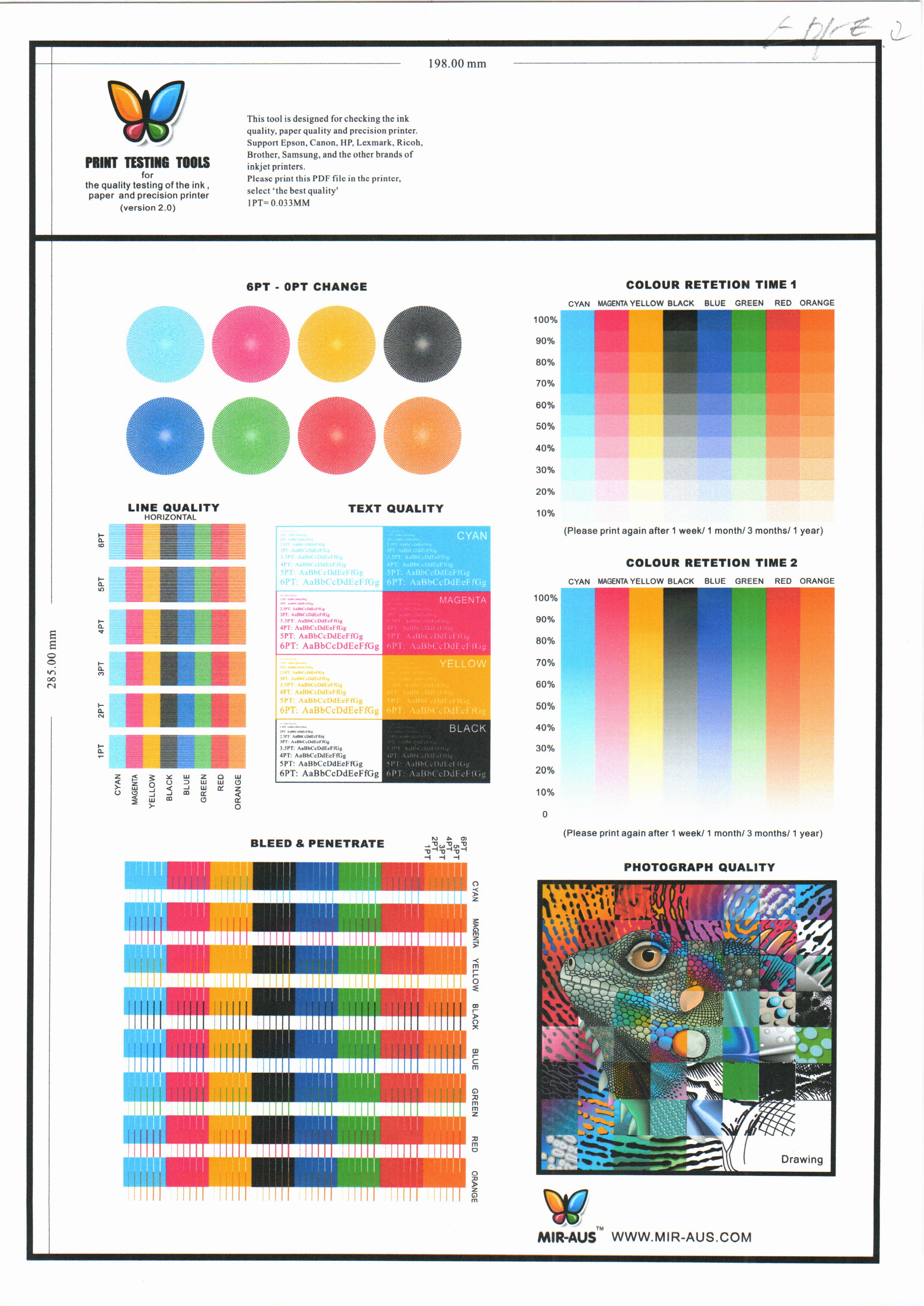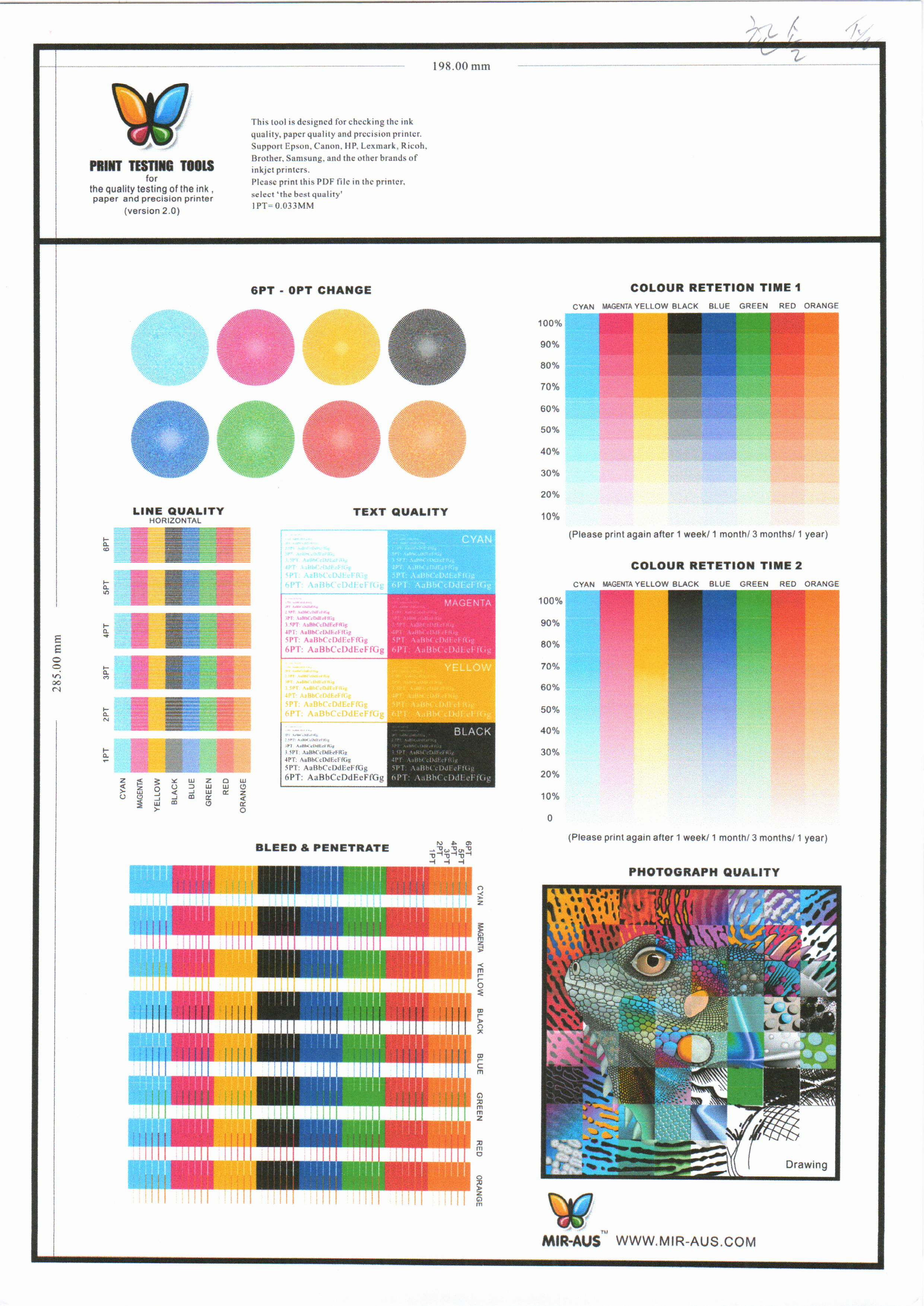 아래 이미지는 표준모드 출력물 비교챠트입니다.