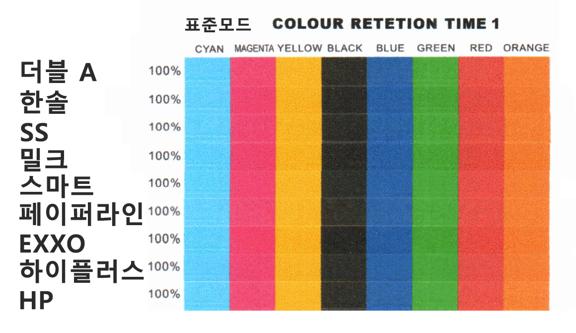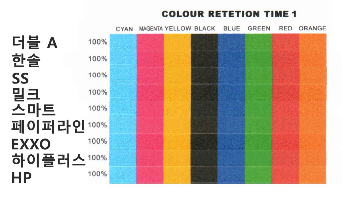 출력물 비교에 사용된 A4용지의 종류는 다음과 같습니다.
