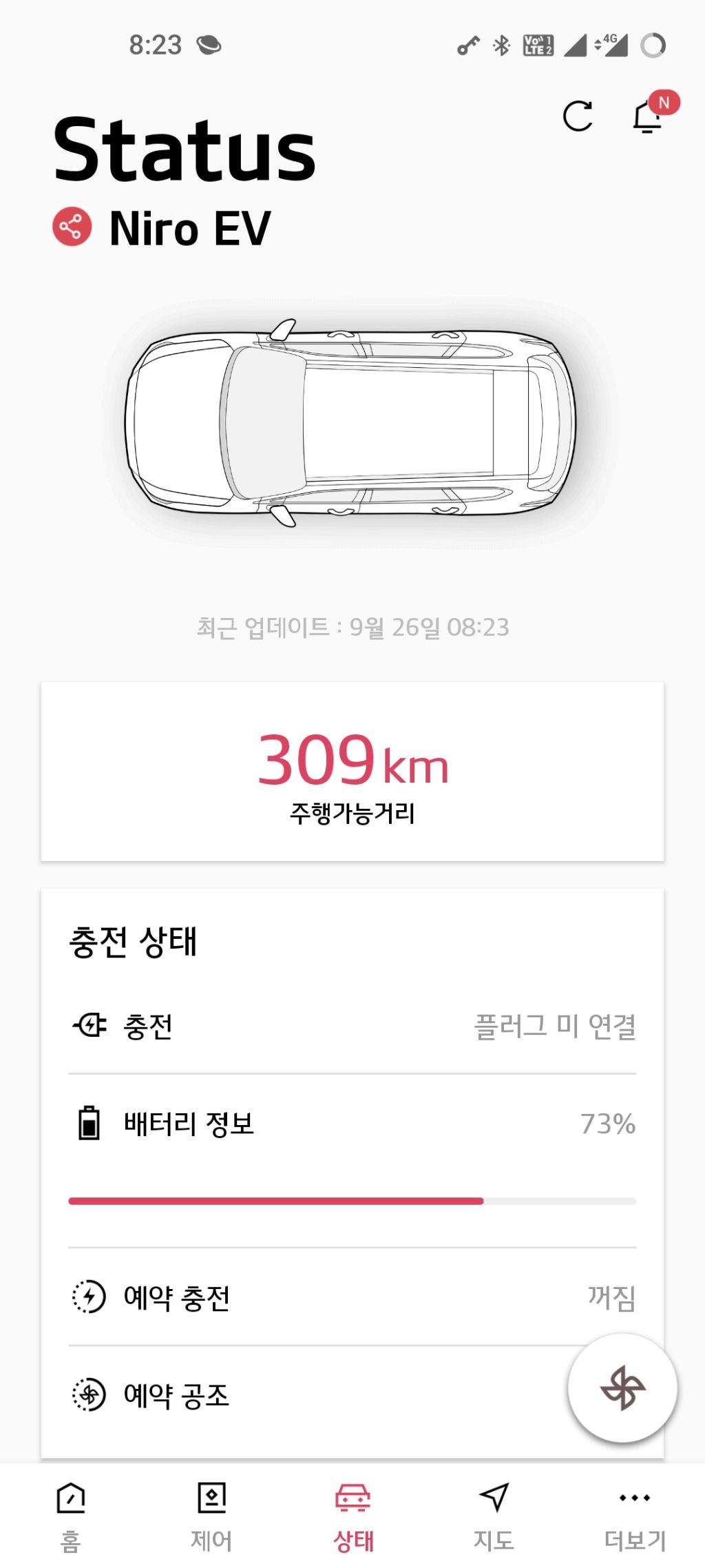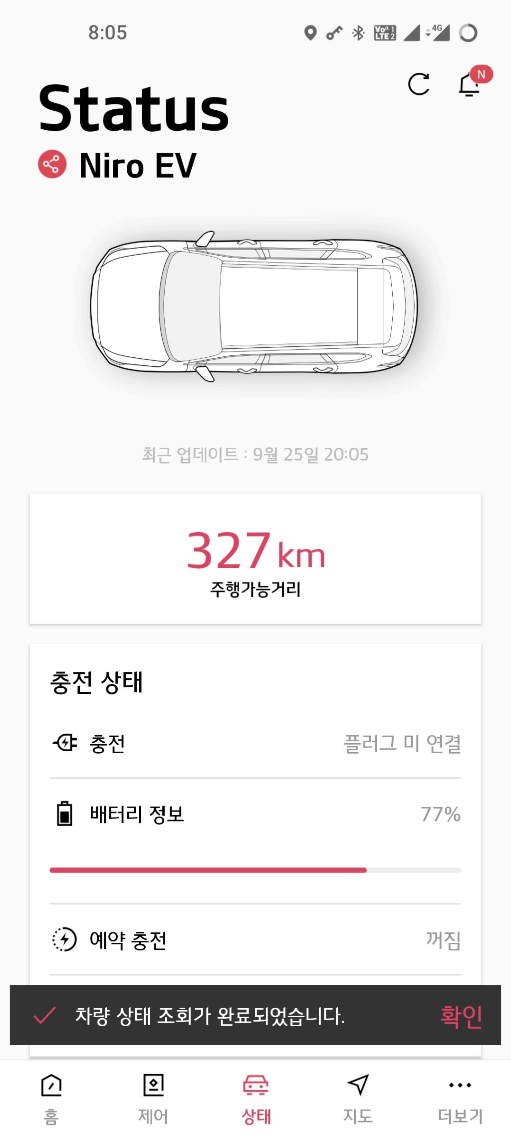 유틸리티모드를 활성화 하기 전 차량의 배터리 상황은 77% 남은 상태.