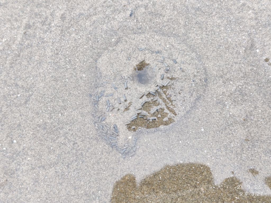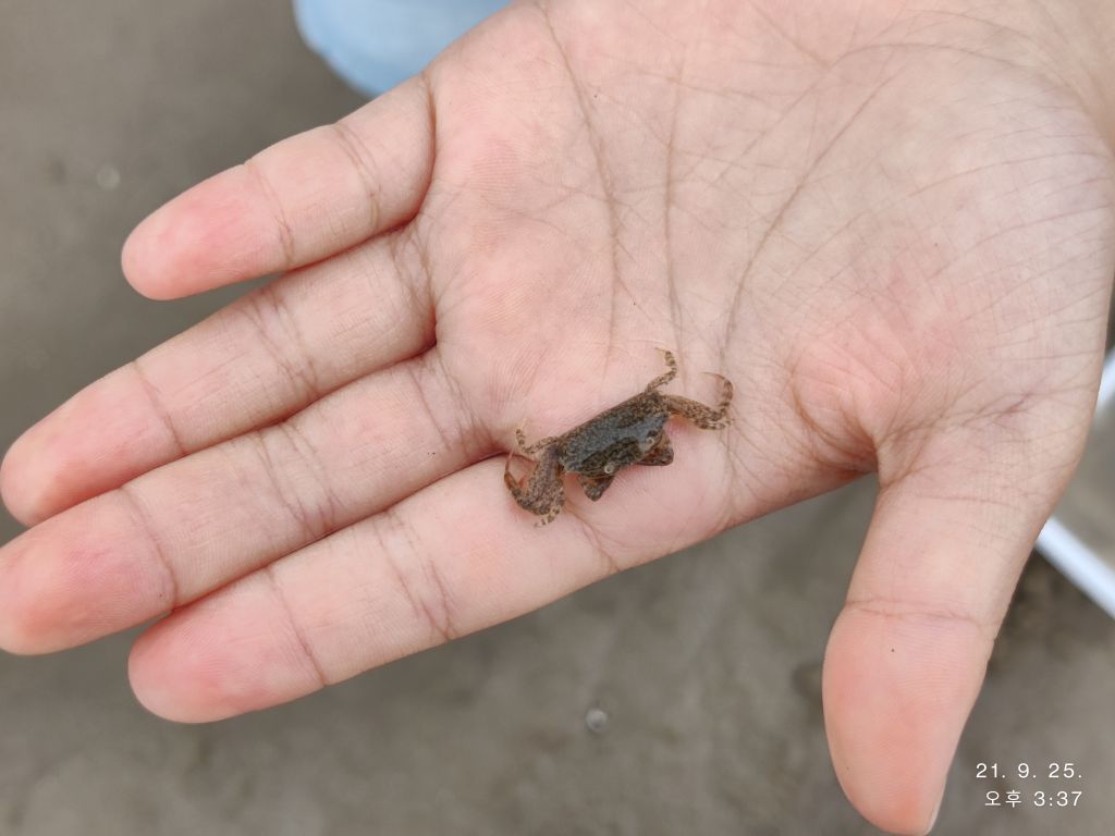 아래 구멍을 열심히 팠더니 아기 게가 숨어 있더군요. ㅋ