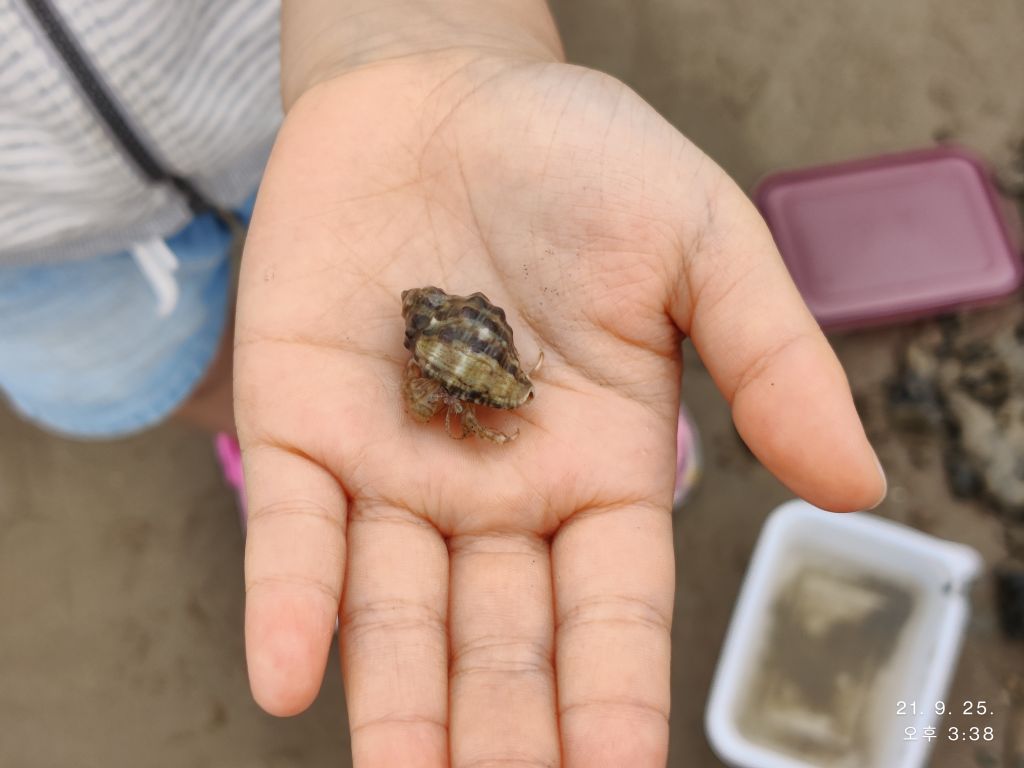 소라게도 한 마리 잡아 가지고 놀다 방생해 주고
