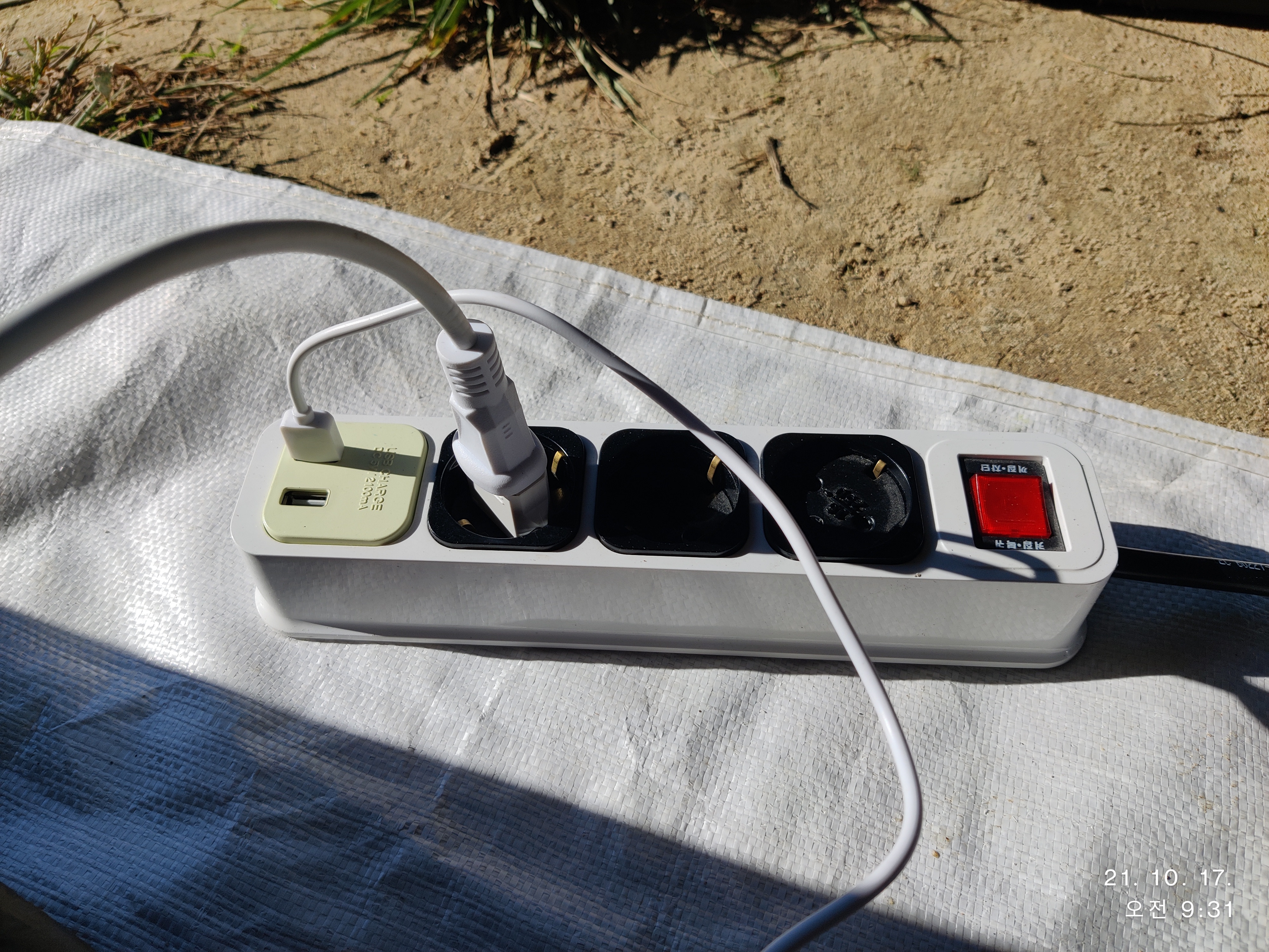 휴대폰 충전은 멀티탭에 붙어 있는 충전포트를 이용하여 충전했습니다.