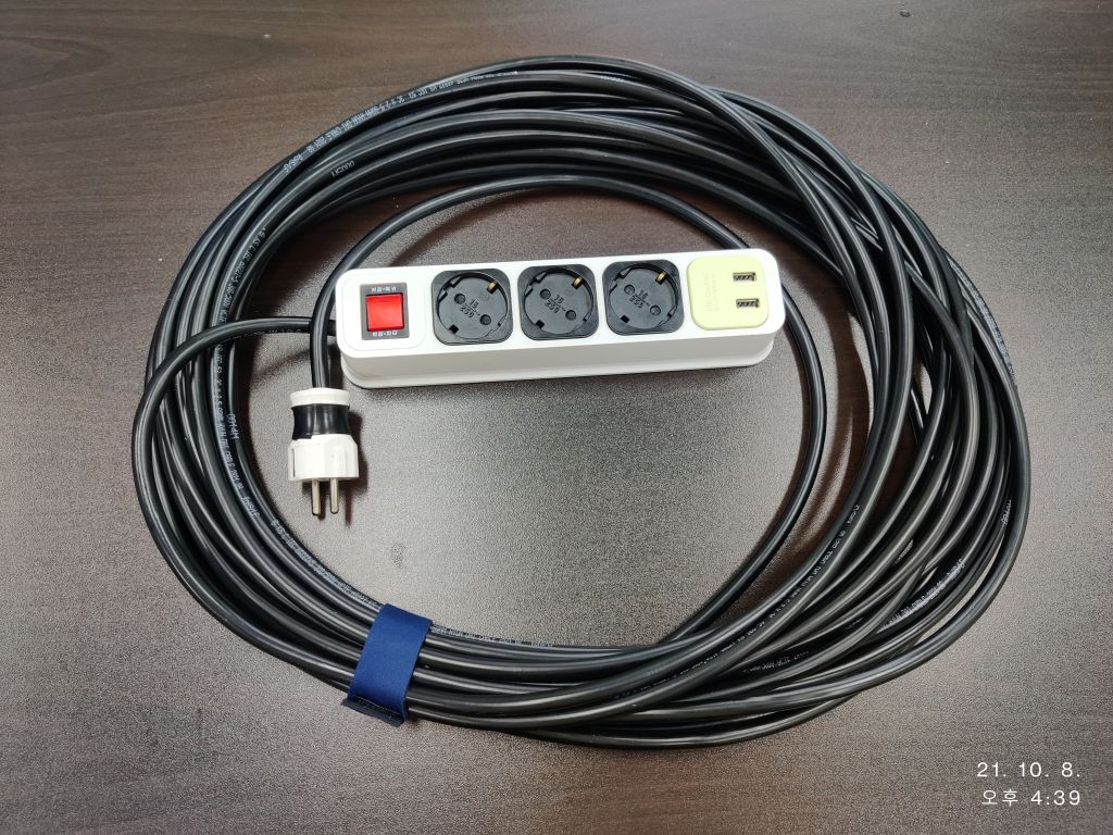 행여 부족할 지 모르니 10m 짜리 하나 심플하게 만들어 가지고 다니면 전기 사용에 대한 부족은