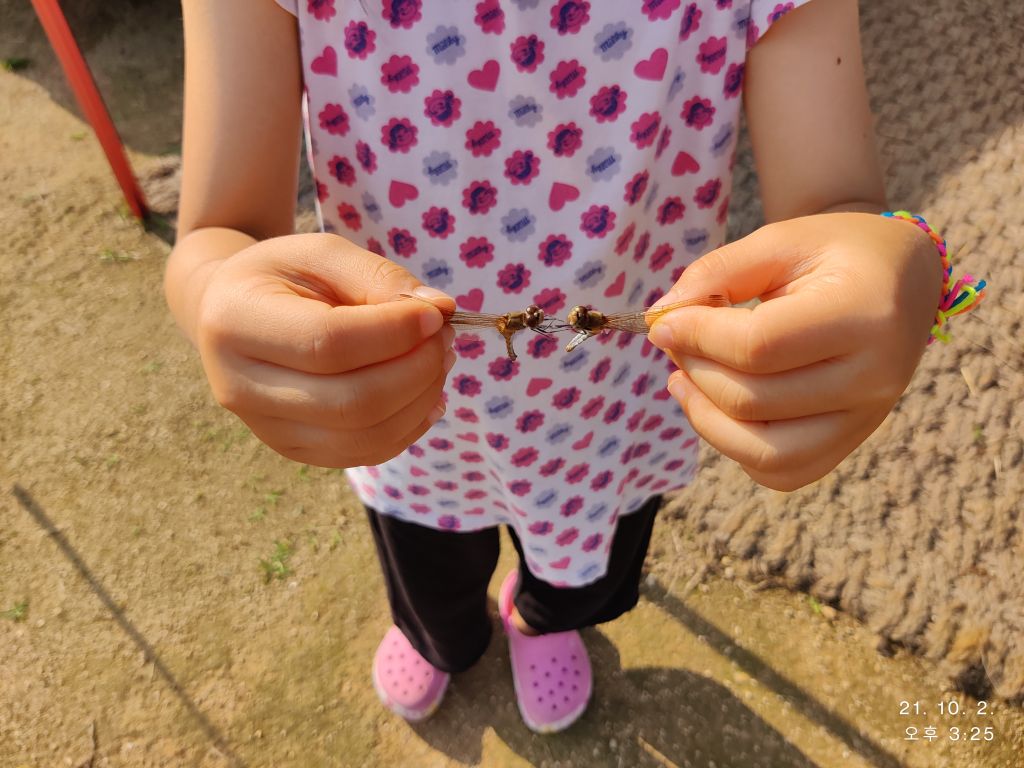 잠자리를 잡아 딸아이랑 함꼐 놀고 ~~