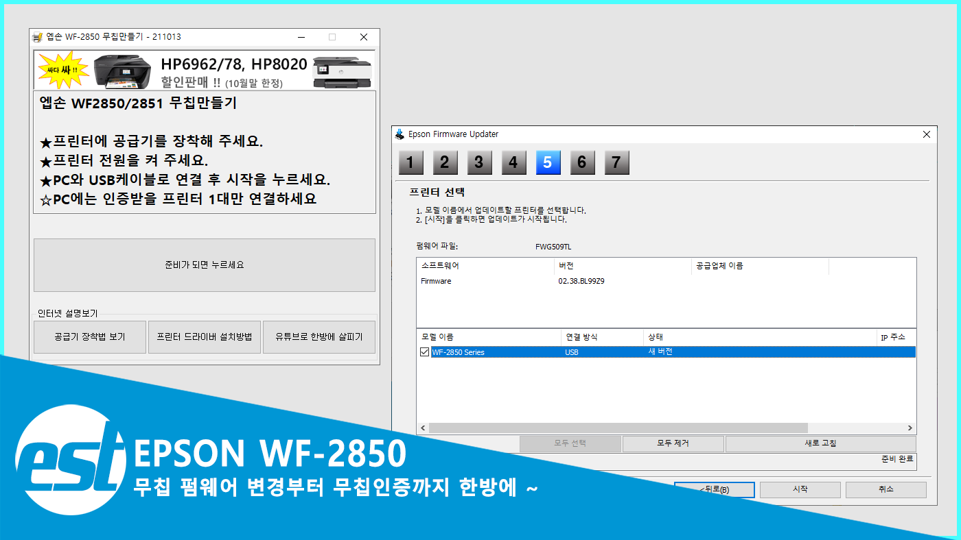1.새 프린터를 USB로 컴퓨터와 연결을 합니다.