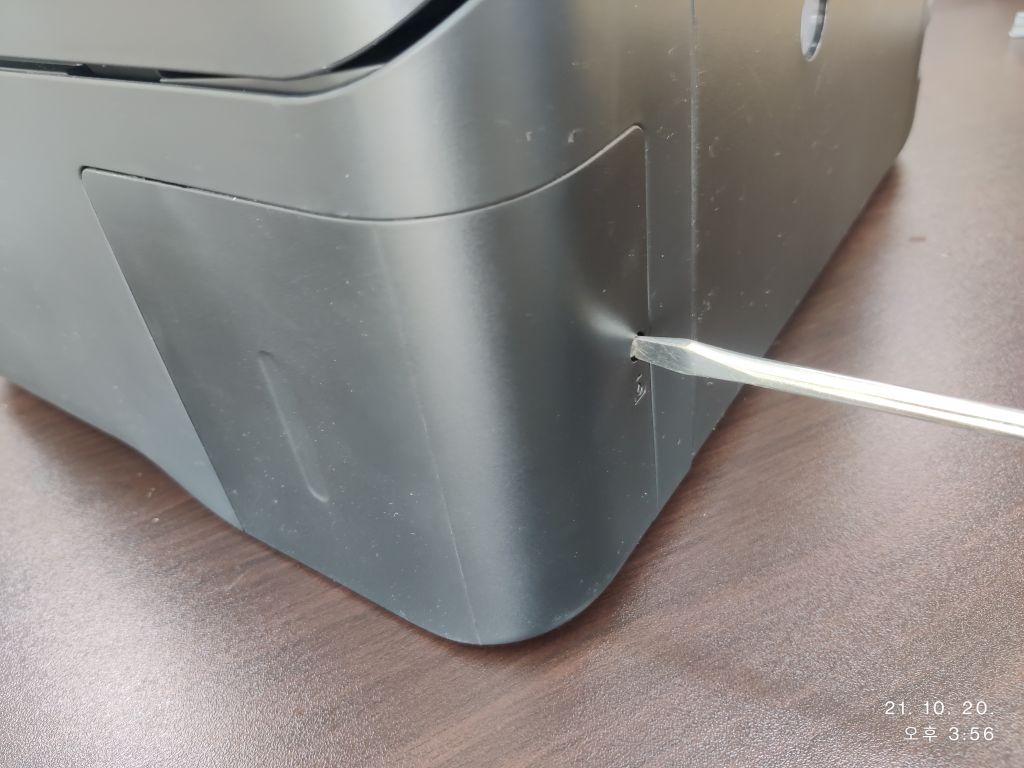 프린터 우측면 뒷 부분으로 프린터를 돌립니다.