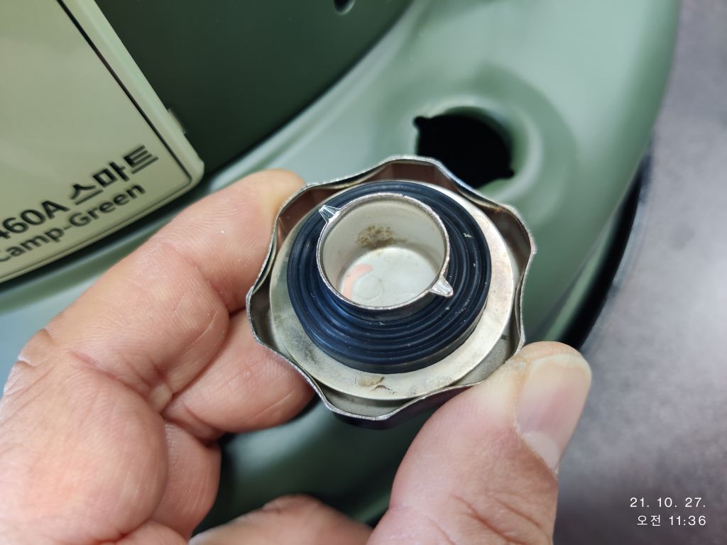석유 주입구에 마개를 열어 보니 패킹이 짱짱하게 붙어 있네요.