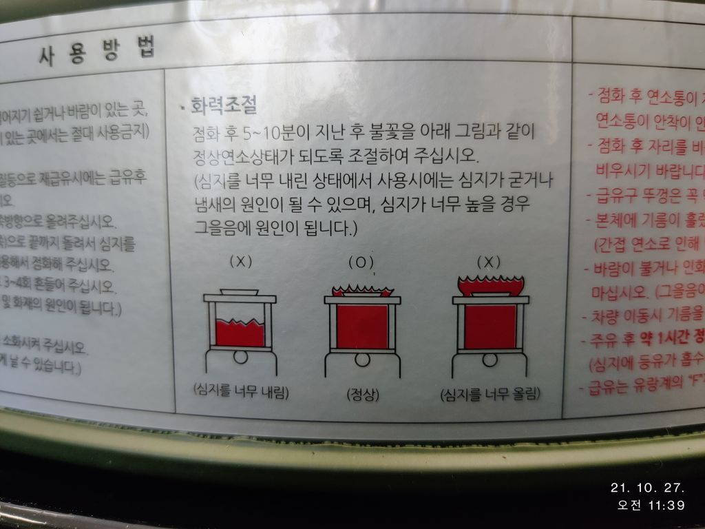이 부분은 연료가 석유이기 때문에 착화시 소화시 어느 정도 냄새는 있다고 보여집니다.