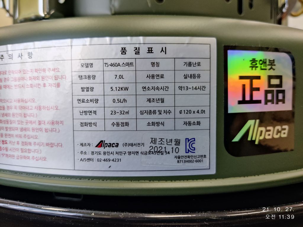 약 21만원에 알파카 석유난로 TT-460 스마트 모델을 영입했습니다. ^^