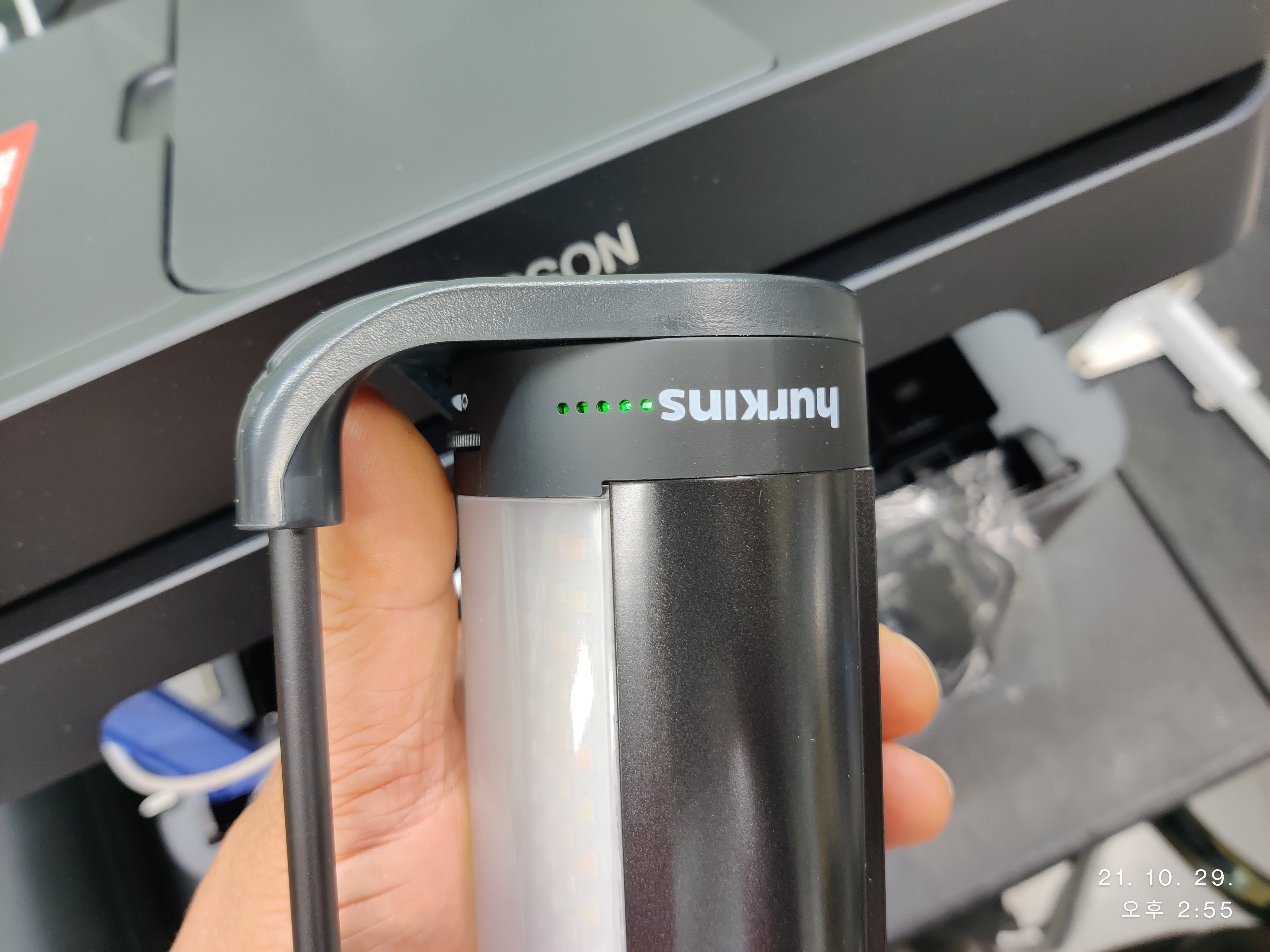 제 작업등은 하룻밤 사용한 상태에서 점등한 사진입니다.