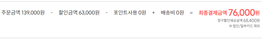 판매가 139,000원에 이런 저런 할인을 받아 구입하면,