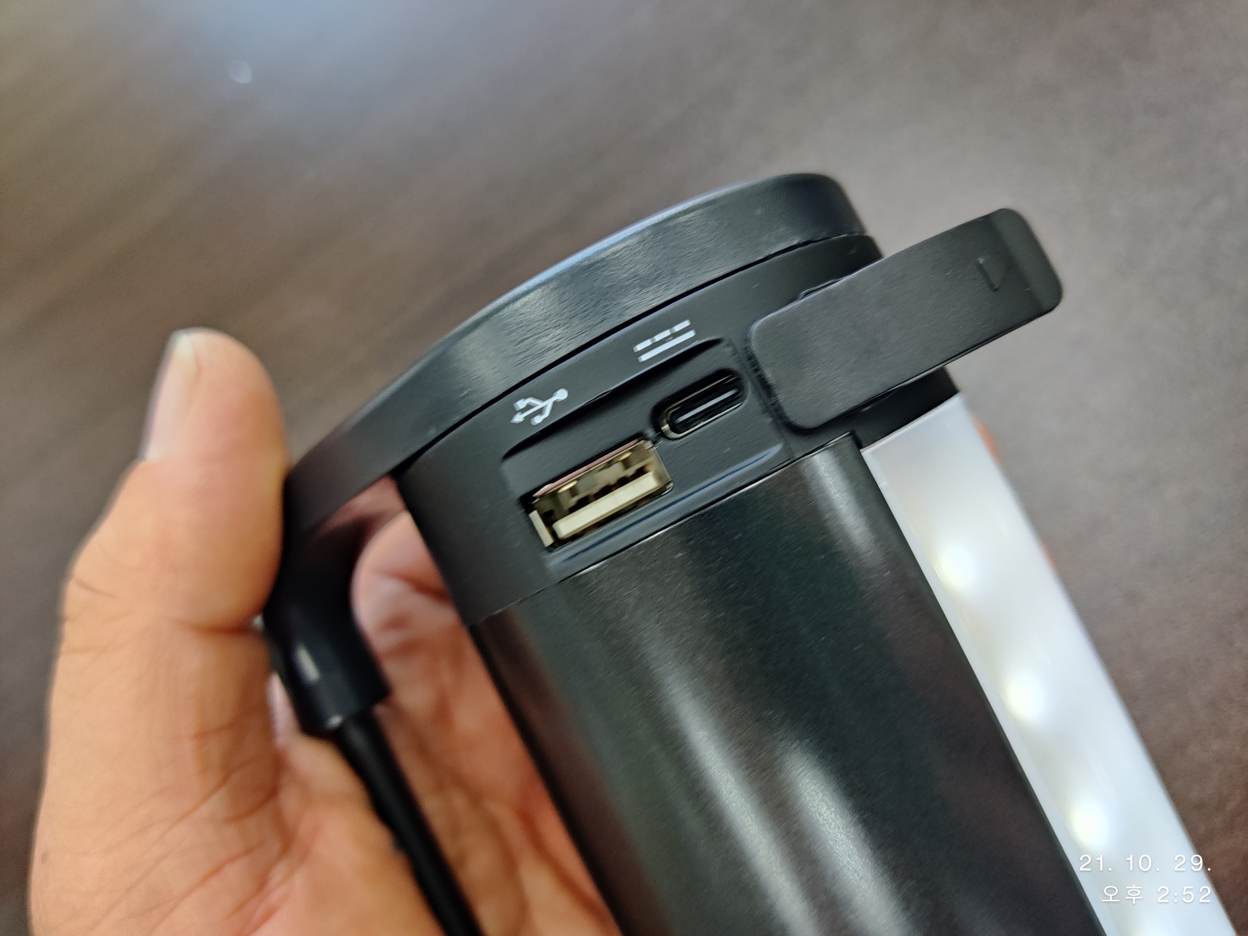 좌측은 파워뱅크 역할을 하는 USB 포트가 자리하고 있습니다만
