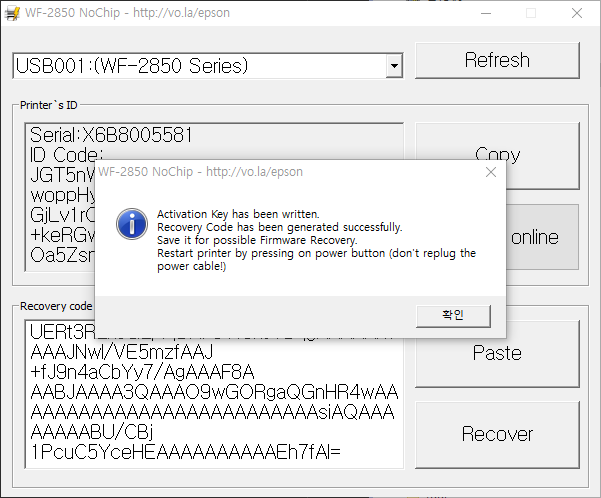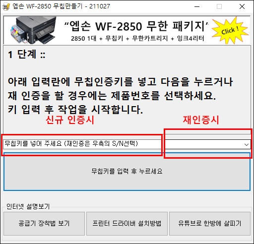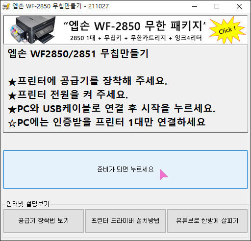 엡손 WF2850, 2851 무칩펌 변경부터 무칩인증을 한방에 :: 2850GO.EXE 다운받으세요