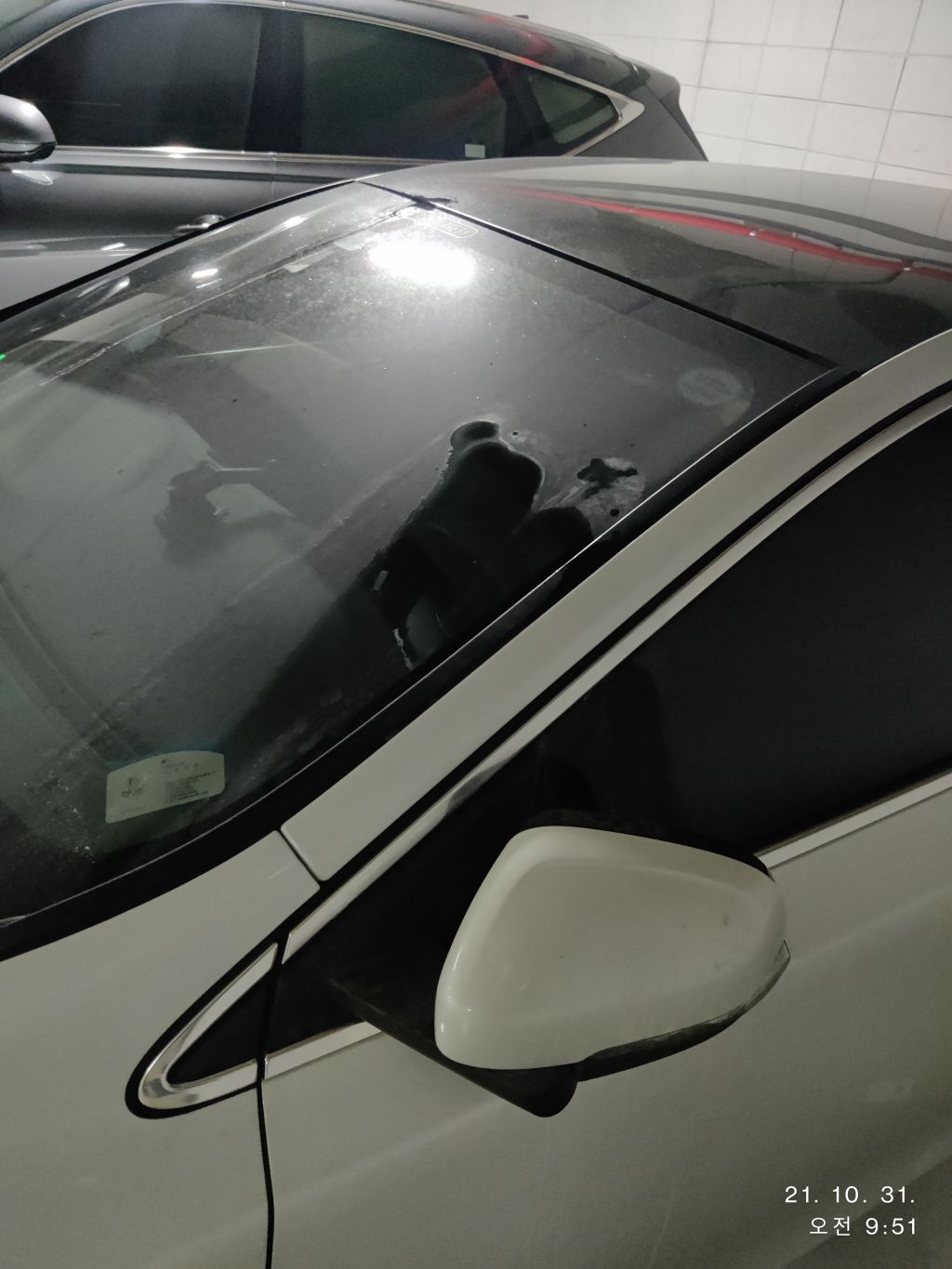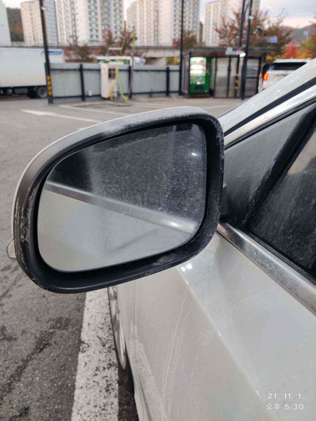 백미러 및 앞 유리에도 허옇게... ㅋ