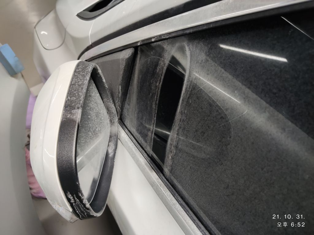 백미러는 보이지 않을 정도로 하얗게 코팅이 되었고요.