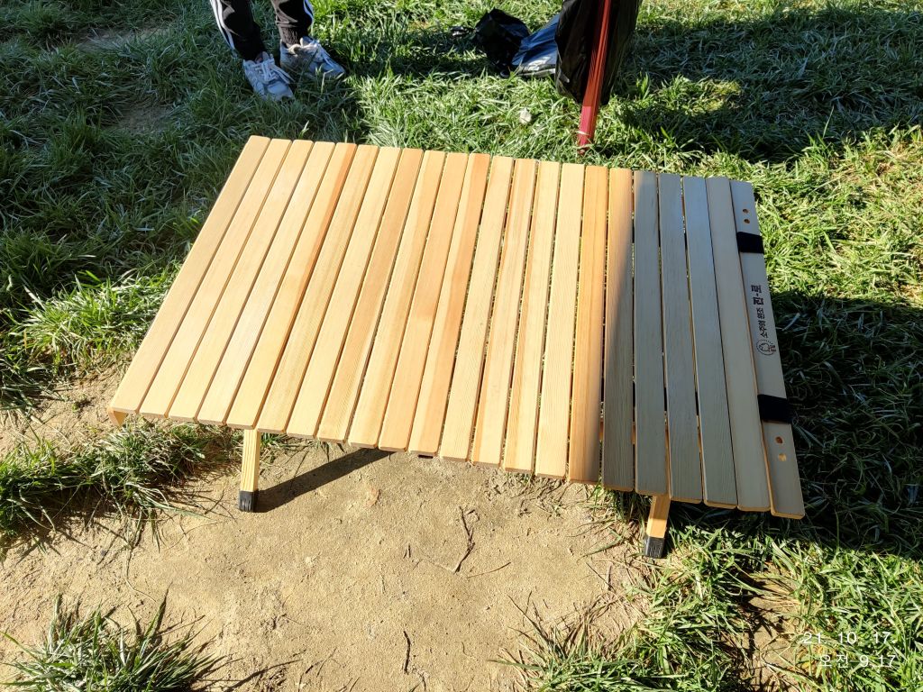 그 롤테이블을 가지고 몇 번 캠핑을 다니니 이제 양쪽 고정홀이 목심에 딱 걸쳐지지 않고 빠집니다. ㅋ