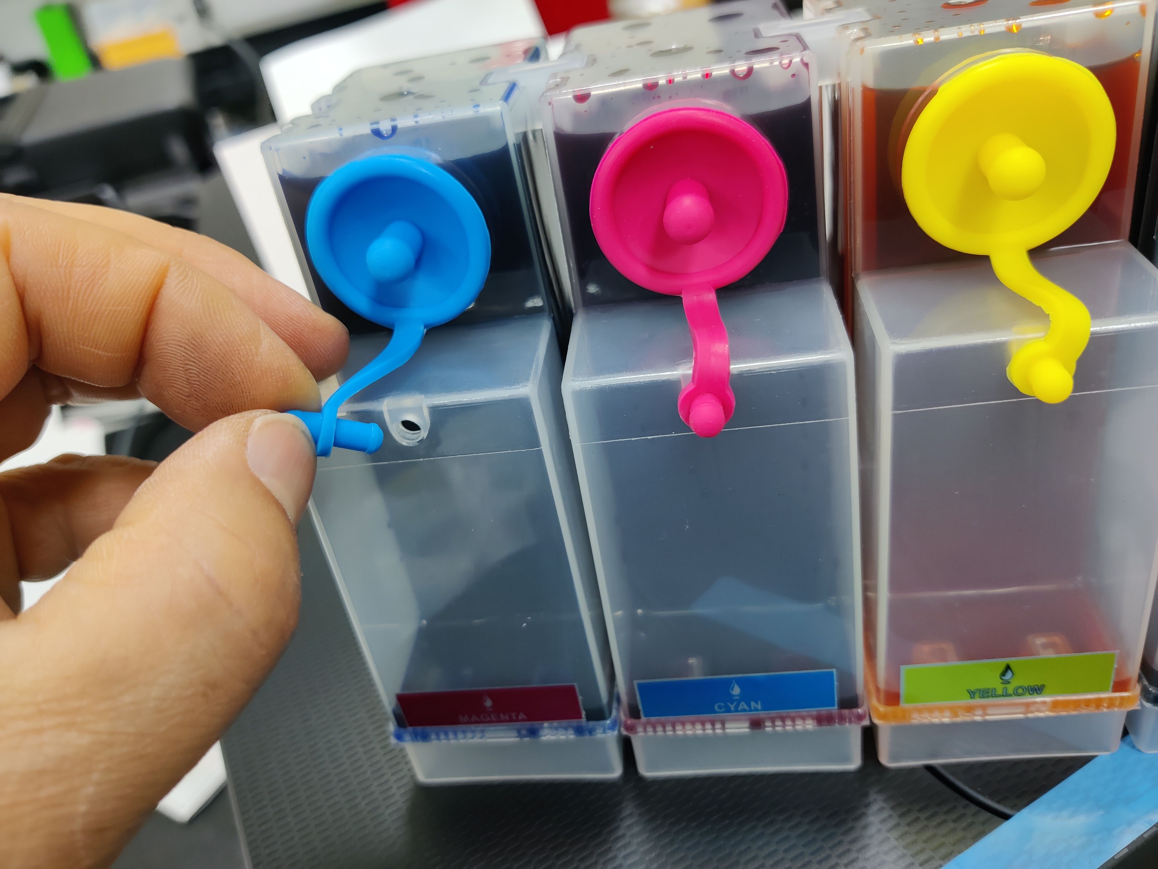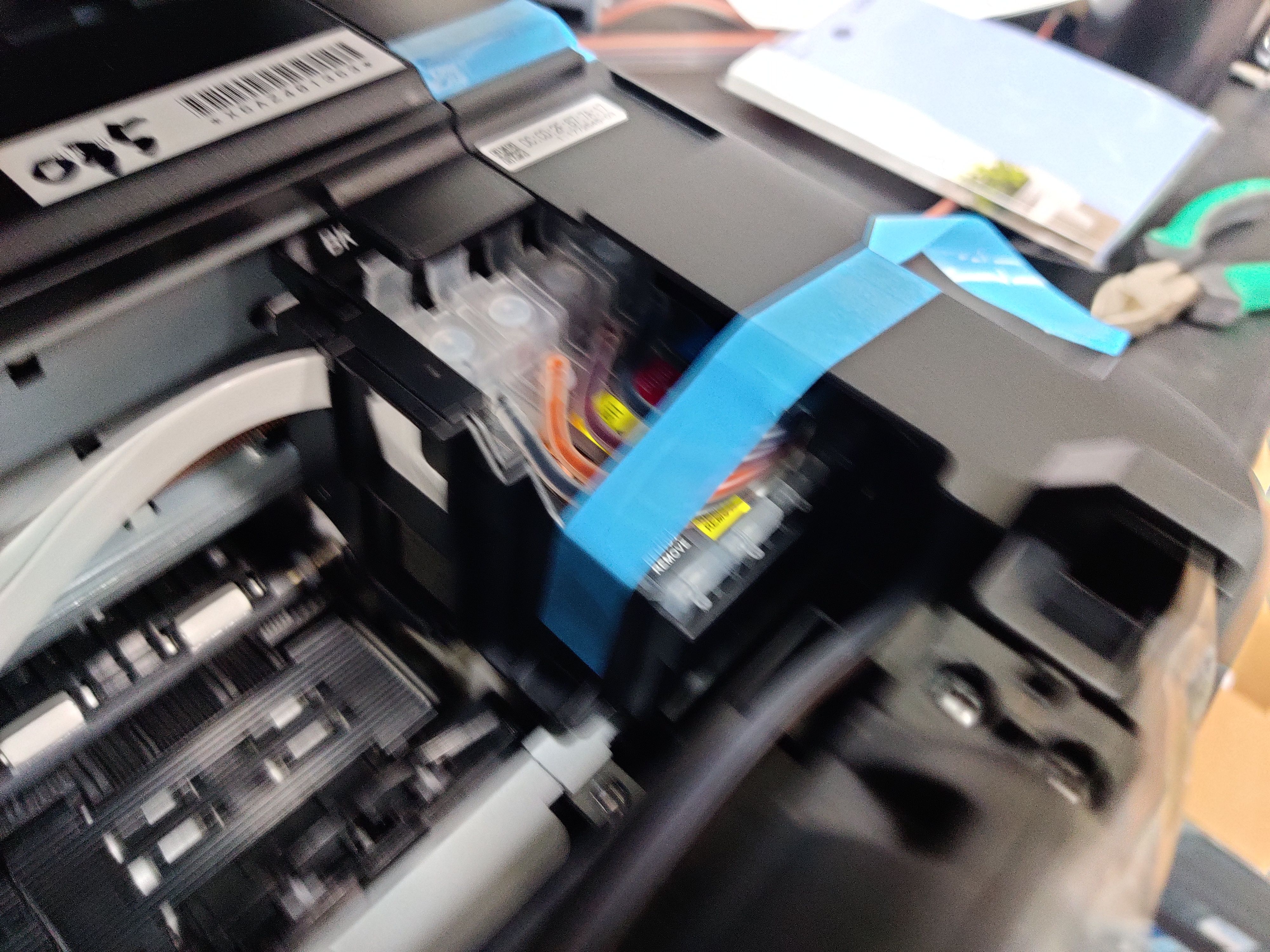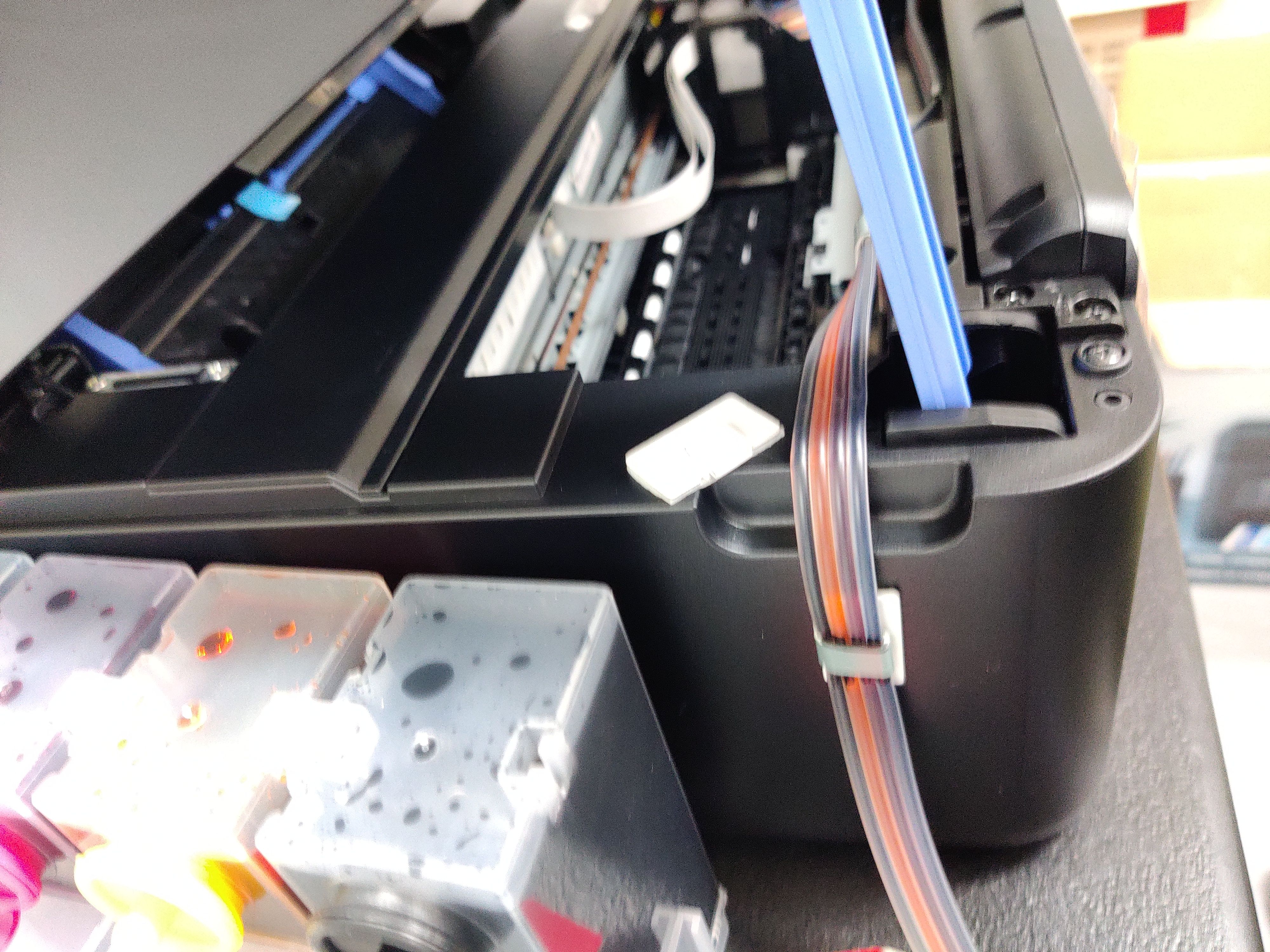 아래 사진은 작업하면서 찍은 사진이라 잉크통이 프린터 위에 있지만