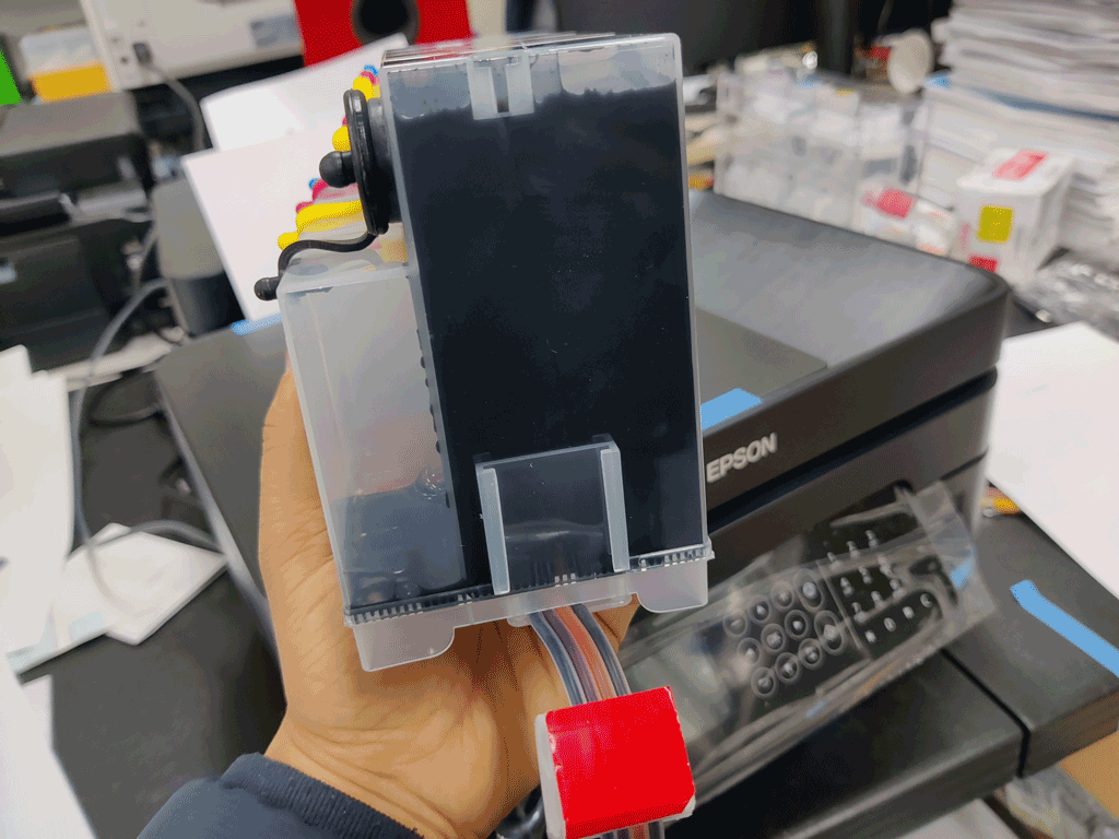 아래 사진은 작업하면서 찍은 사진이라 잉크통이 프린터 위에 있지만