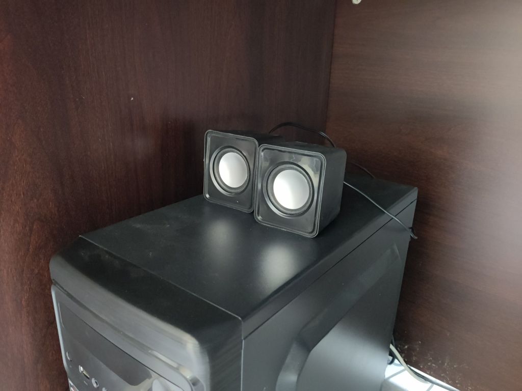 책상 위, 어딘가에 스피커를 두어야 하는데