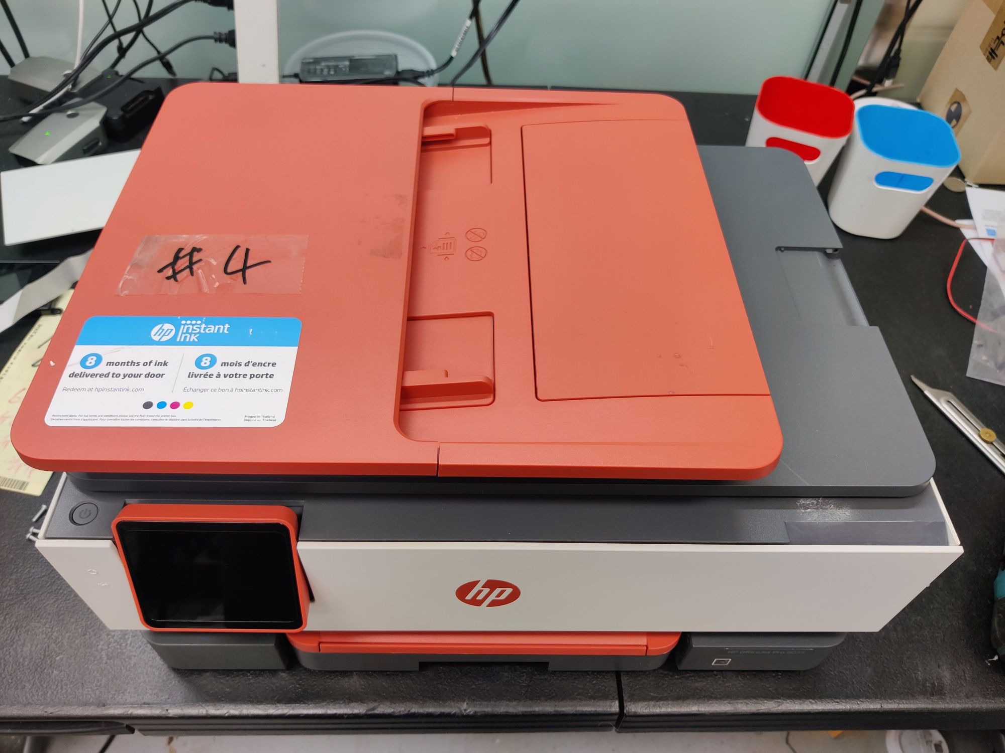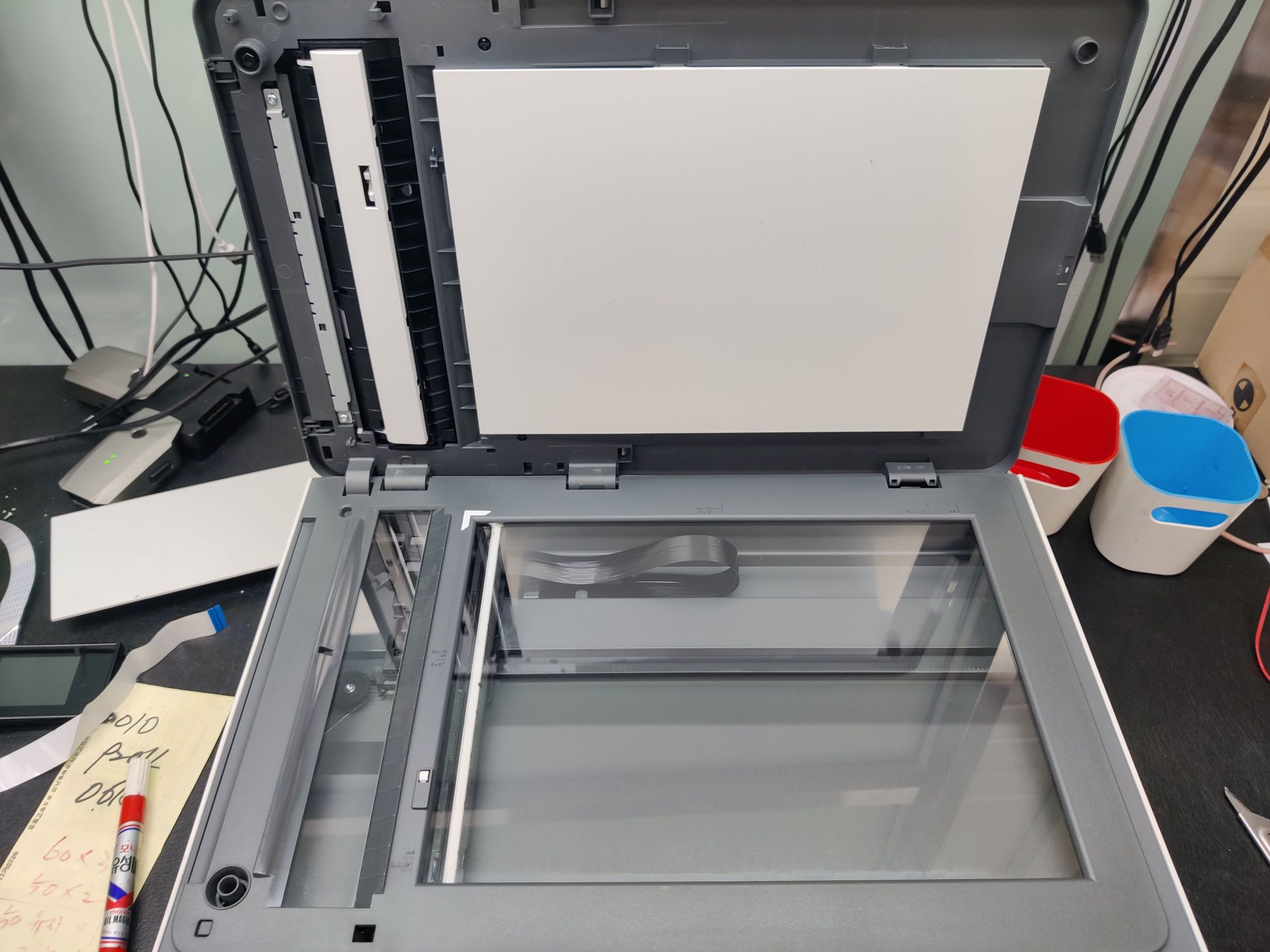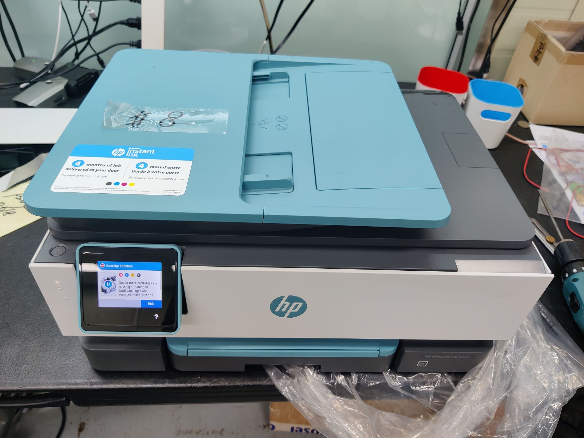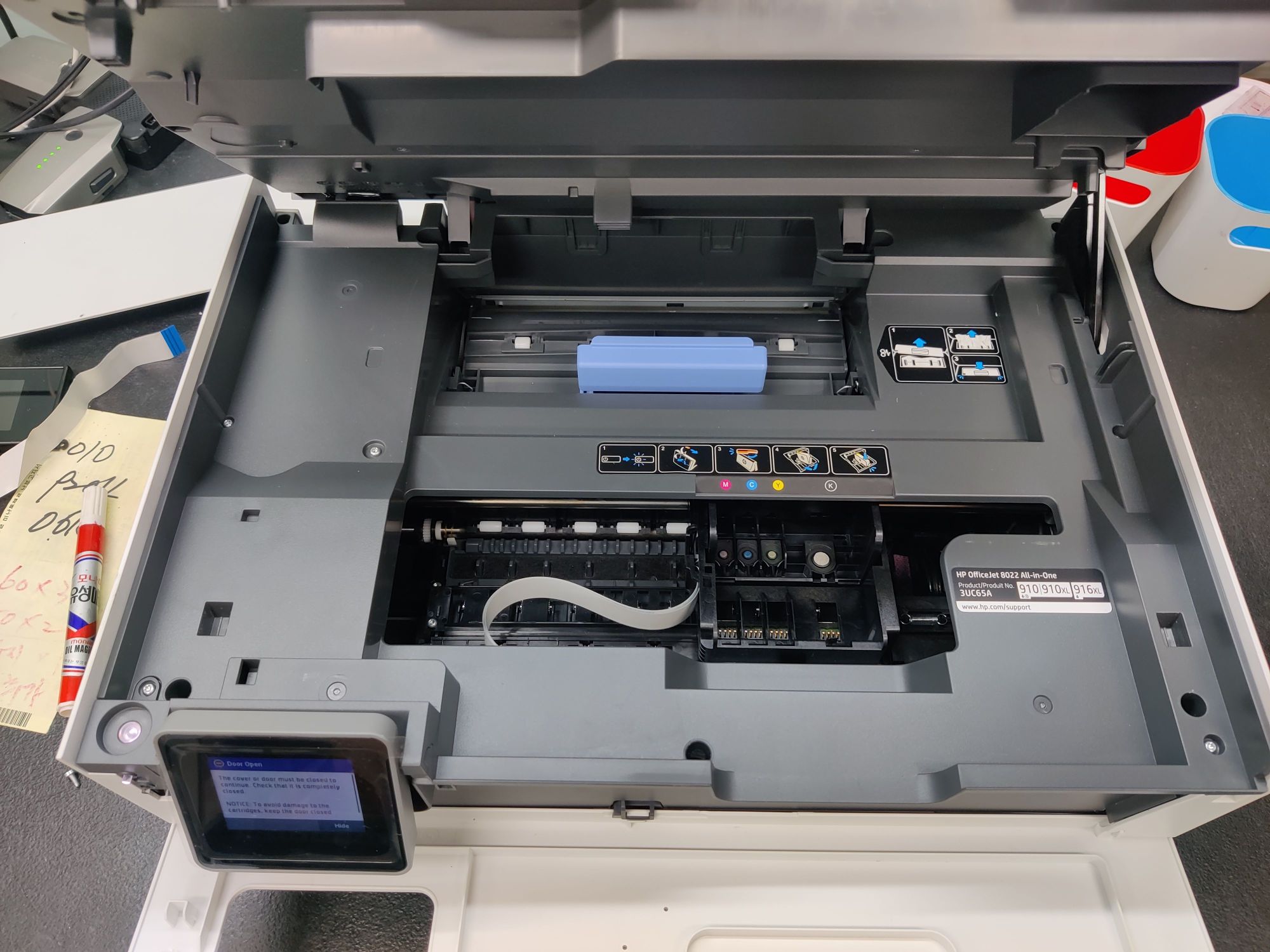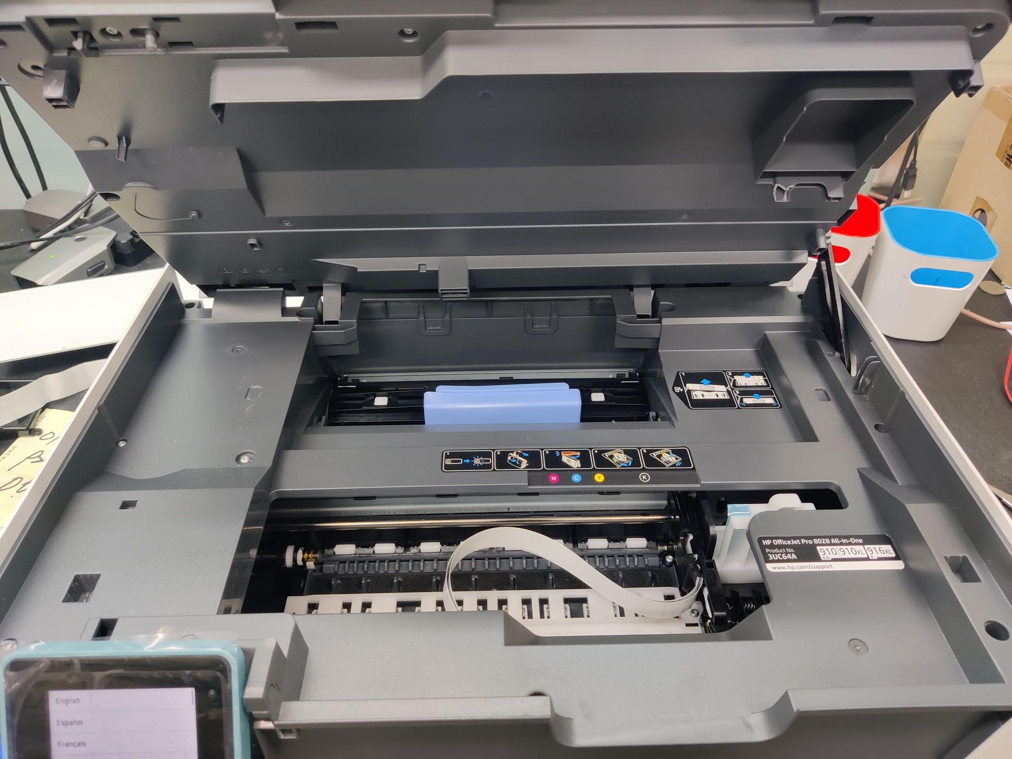 정상동작하지만 대용량 잉크 장착으로 잉크가 흘러 뒷판에 잉크가 묻어 있습니다.