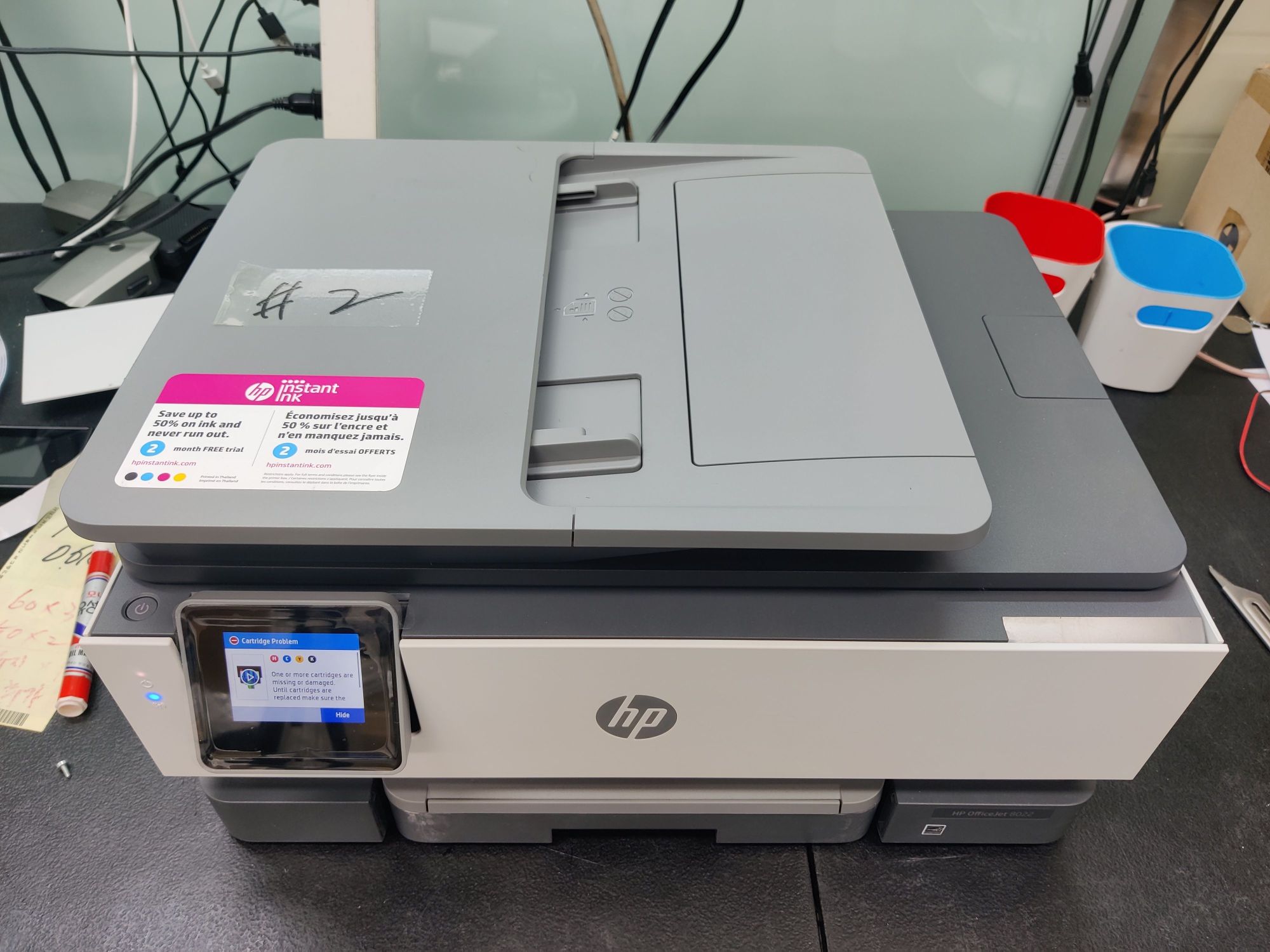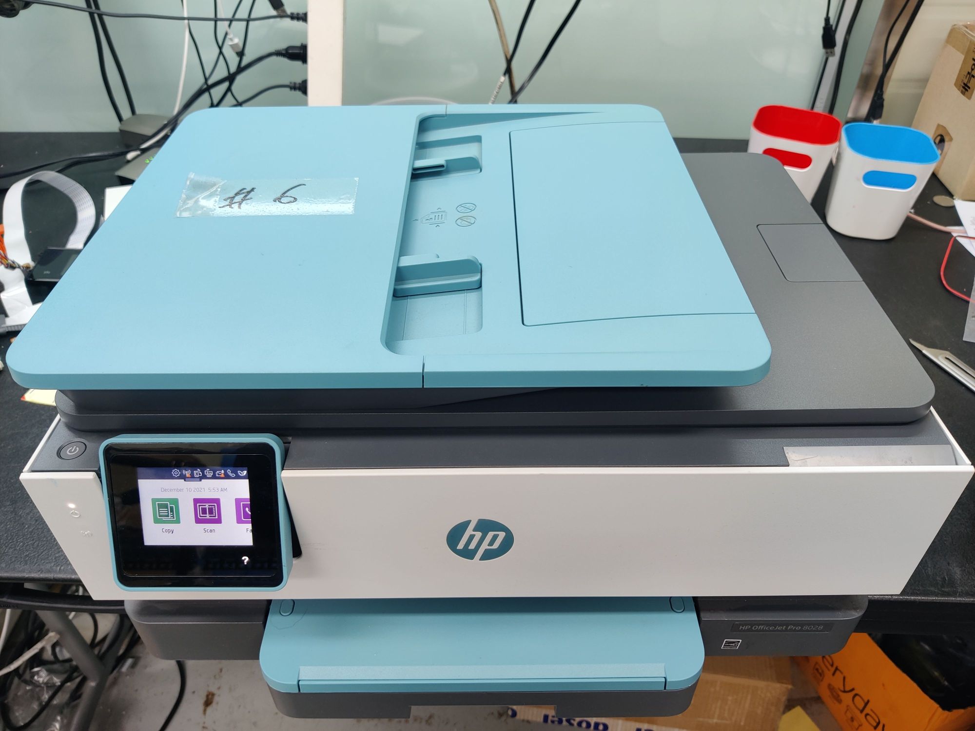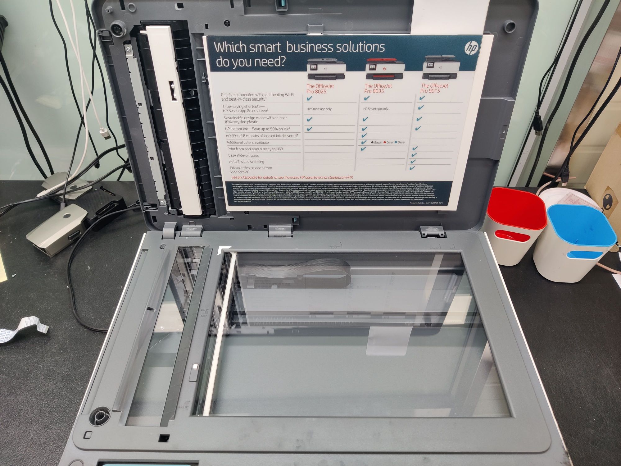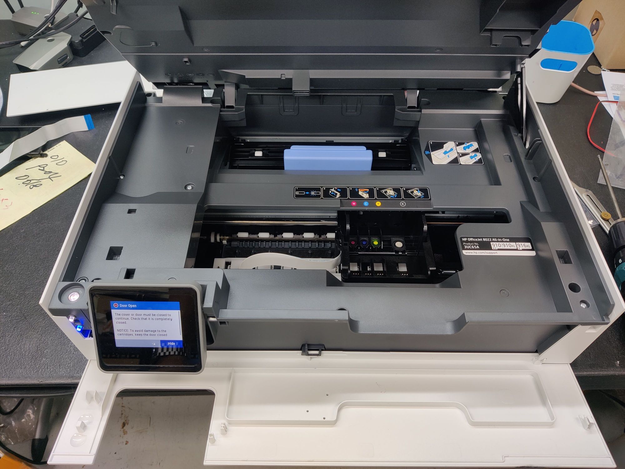 정상동작하지만 대용량 잉크 장착으로 잉크가 흘러 뒷판에 잉크가 묻어 있습니다.