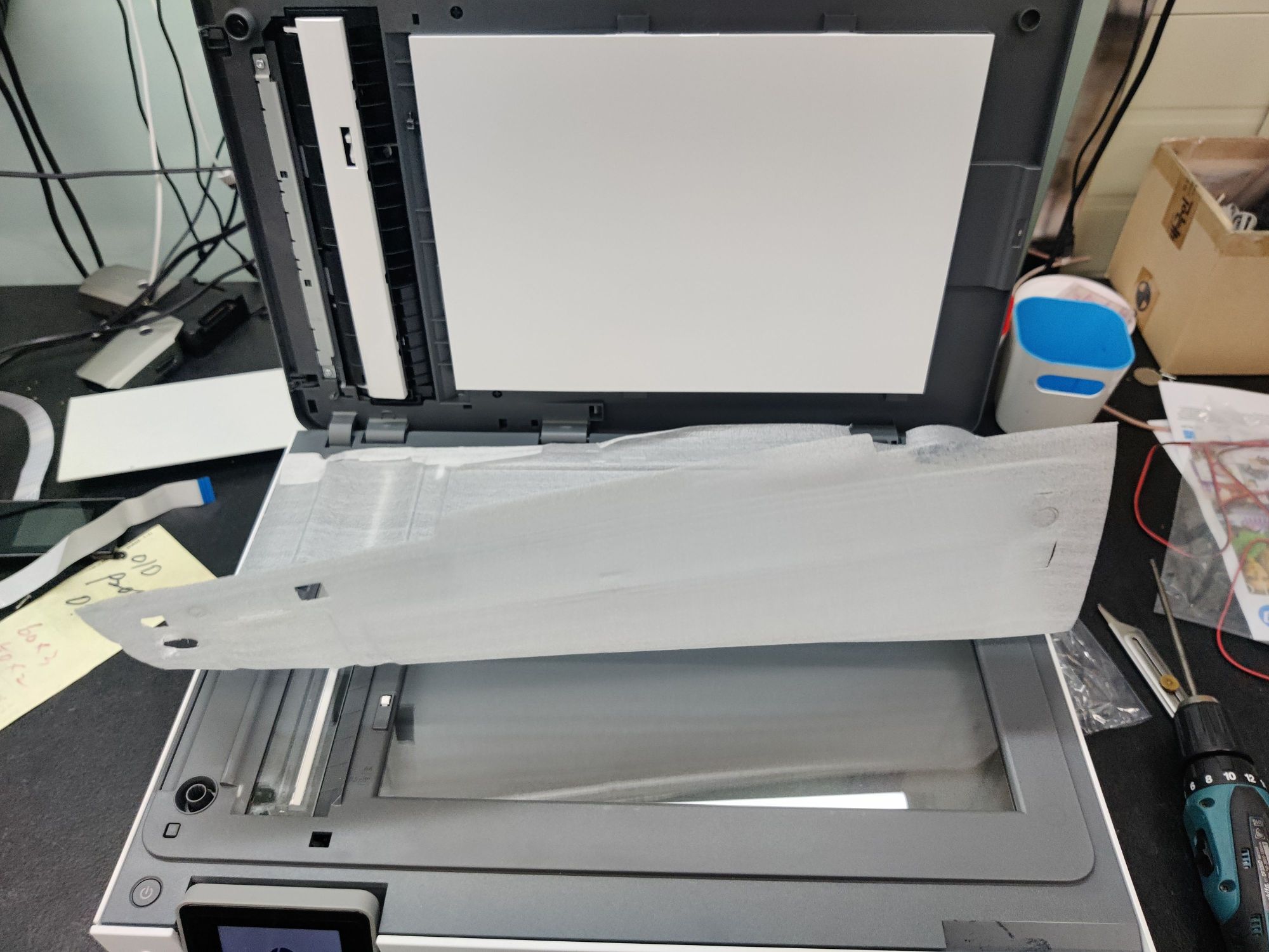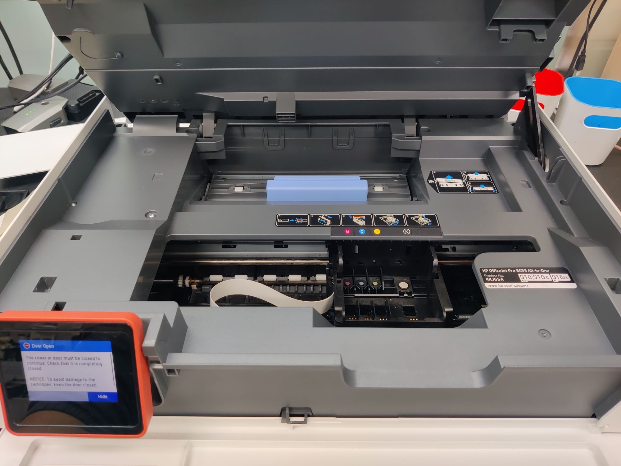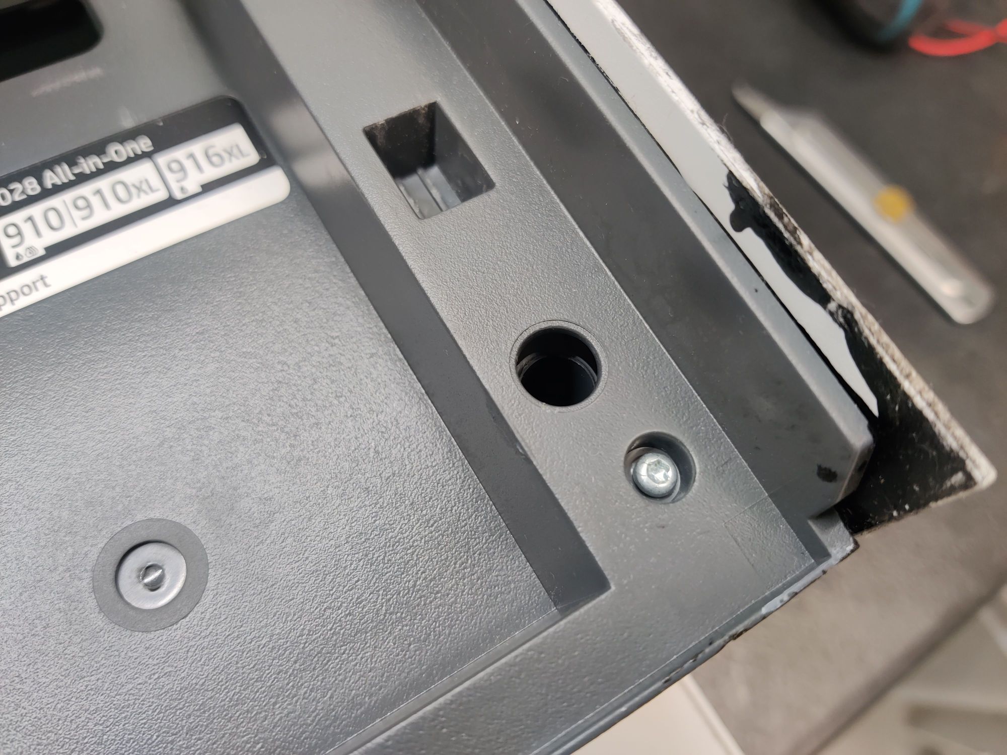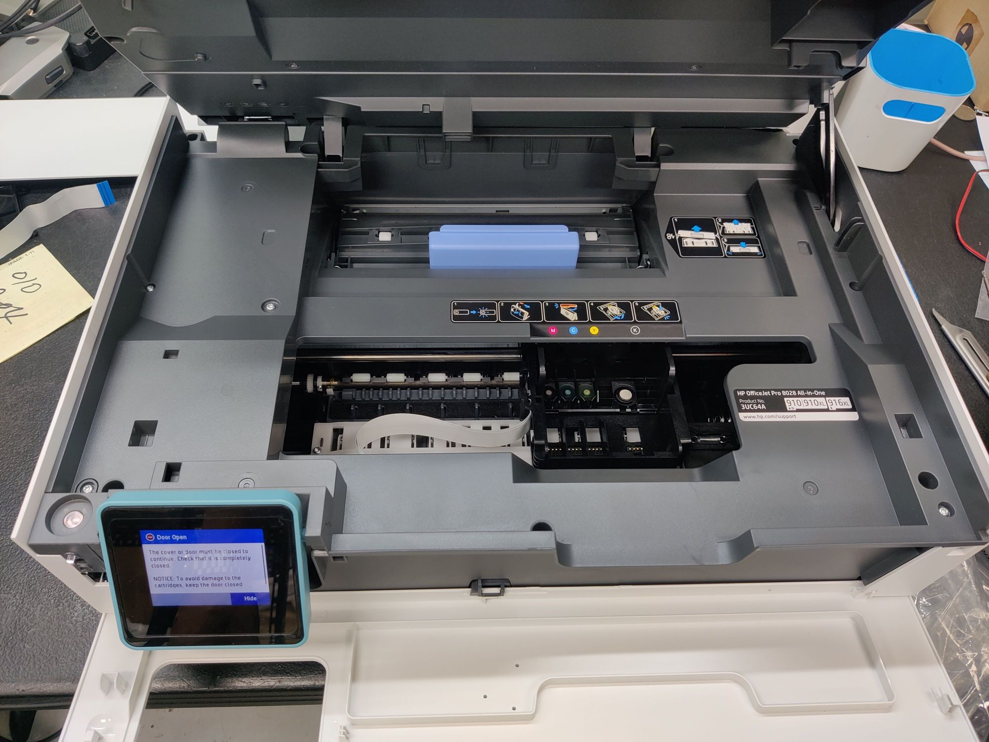 정상동작하지만 대용량 잉크 장착으로 잉크가 흘러 뒷판에 잉크가 묻어 있습니다.