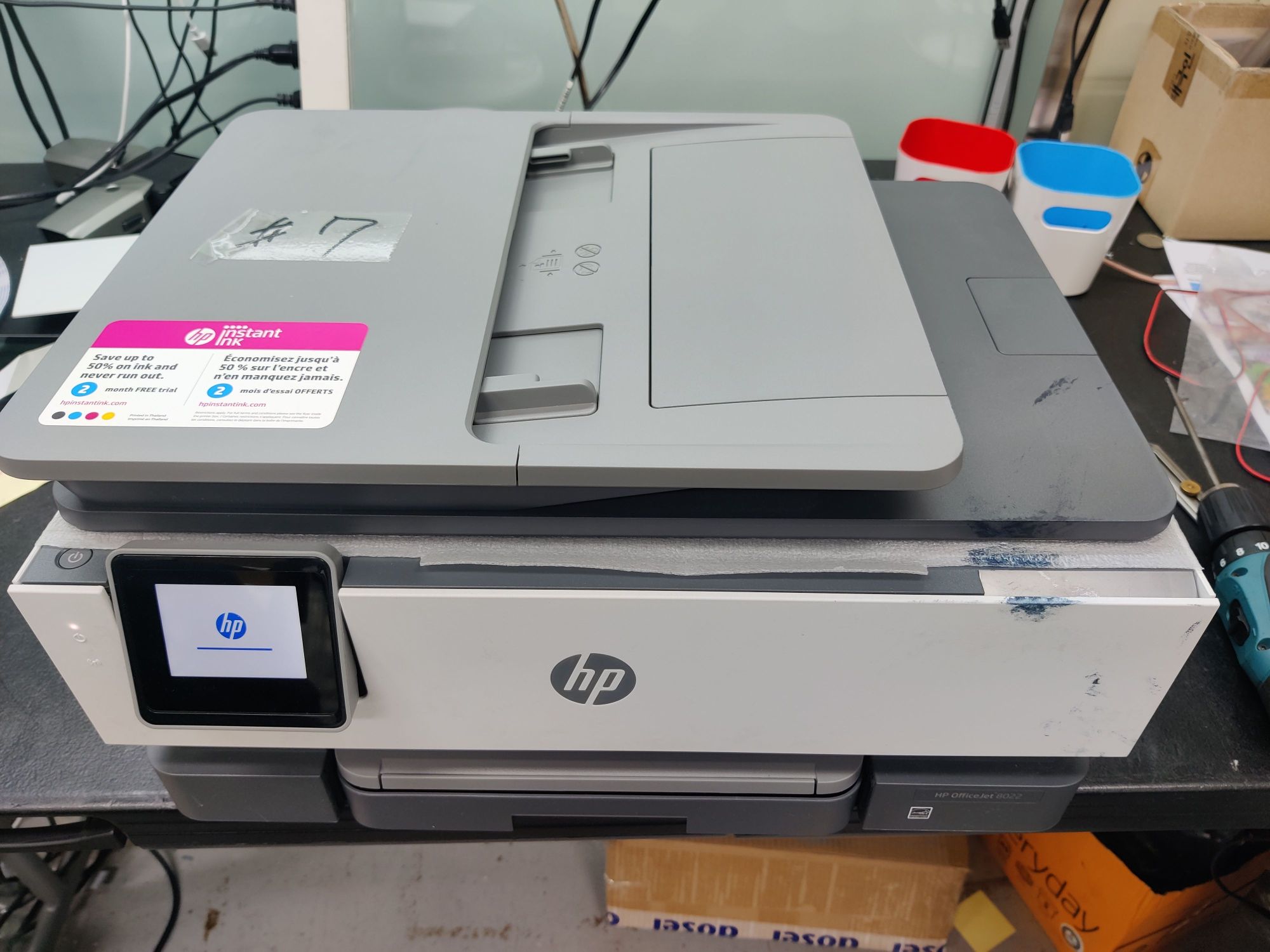 정상동작하지만 대용량 잉크 장착으로 잉크가 흘러 뒷판에 잉크가 묻어 있습니다.