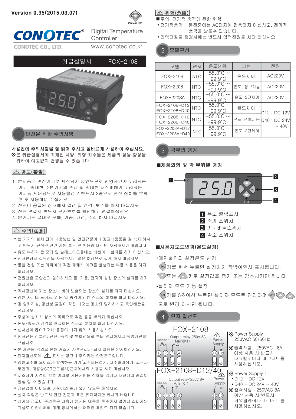 그 때, 사용한 코노텍 FOX-2108 온도조절기의 사용 설명서 입니다.