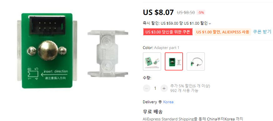위 링크 들어가면 나오는 선택물품 중 가운데 $8짜리만 사세요.