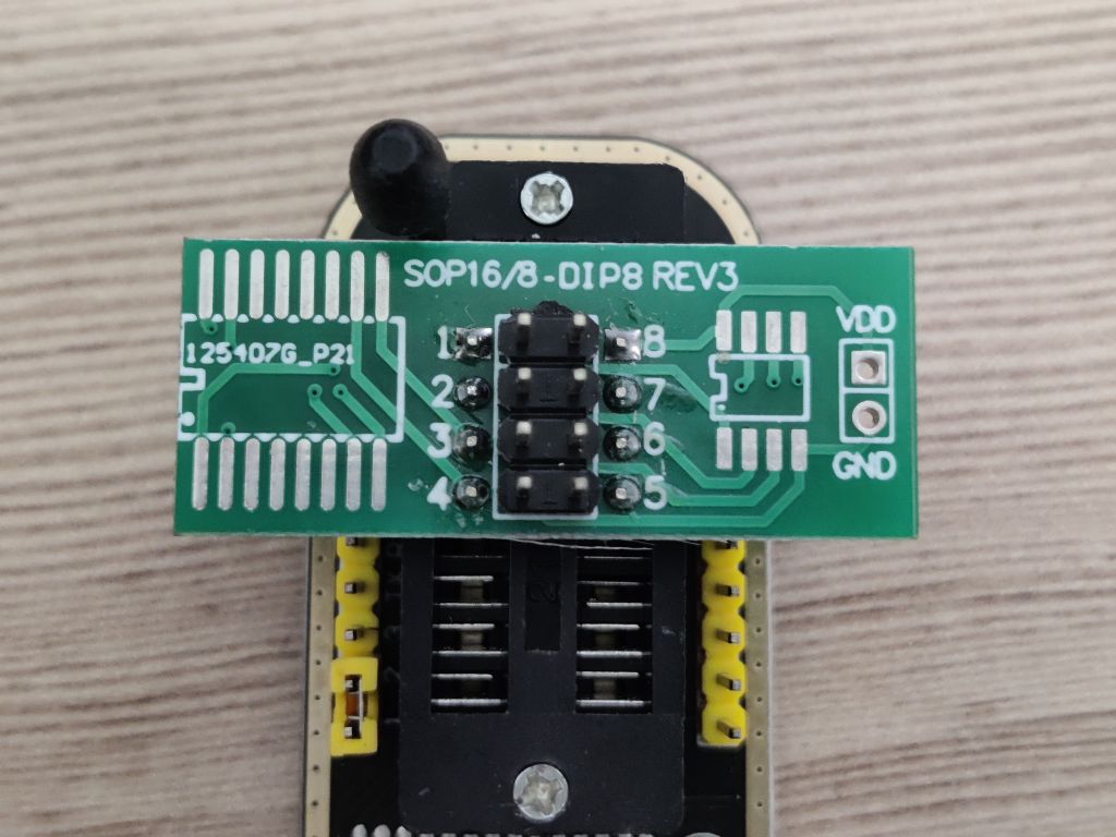 아래 사진처럼 실장되어 있지 않는 EEPROM 칩 등은 아래 아답터를 이용하지 않고 바로 위의 롬라이터에 바로 꼽고 작업을 진행합니다.