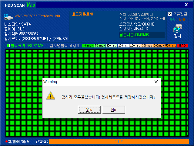 약 5시간 넘게 걸려 3TB 하드의 베드섹터 검사가 마무리 되었네요.