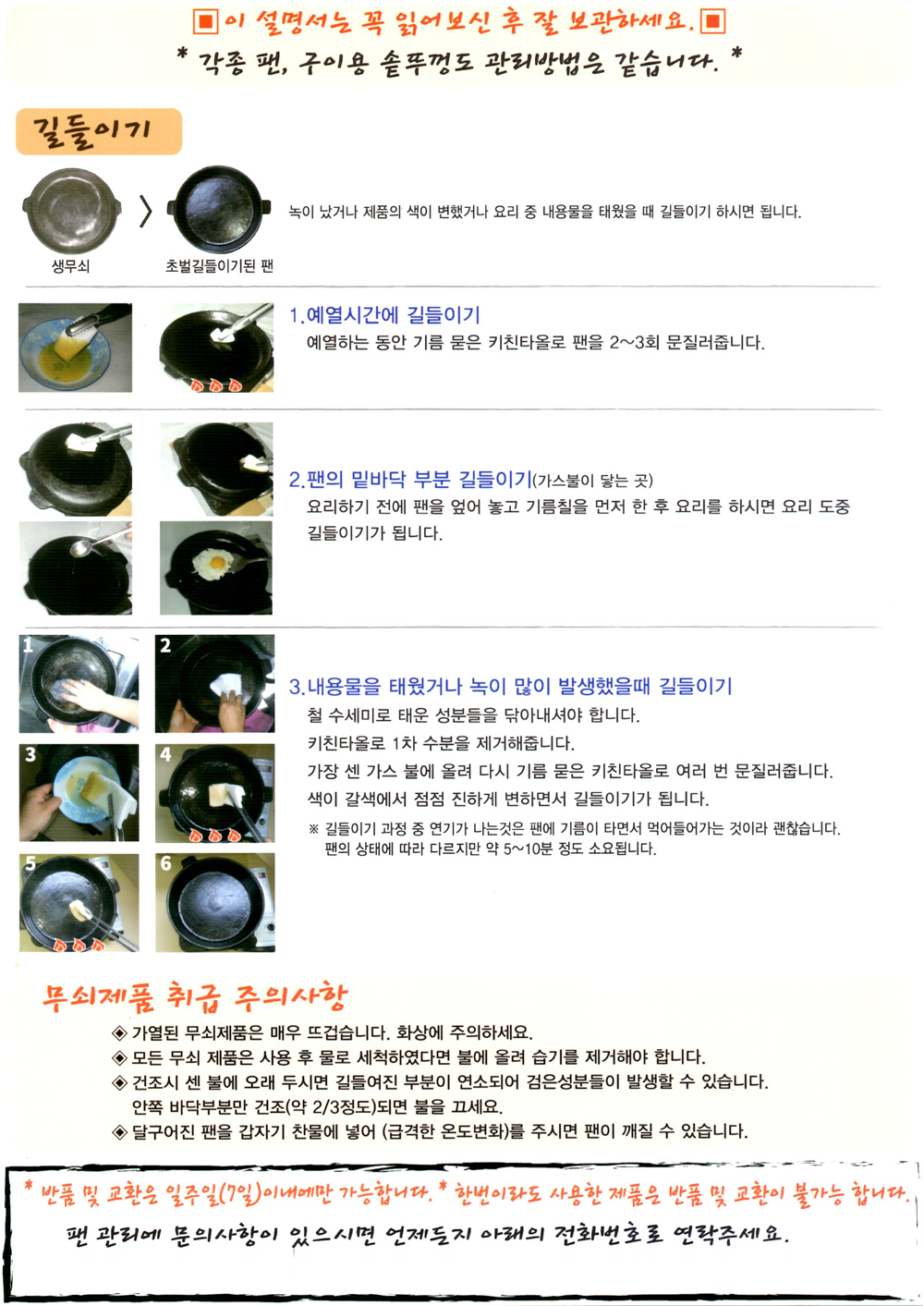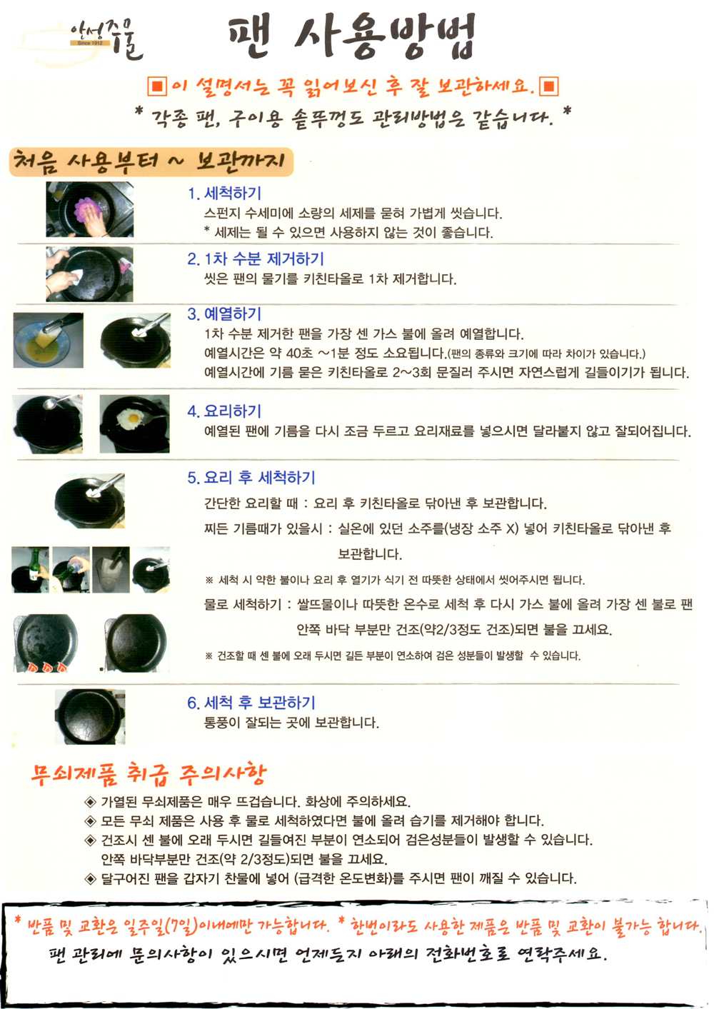 안성주물 팬, 번철 그리들 제품의 시즈닝 방법 및 관리하는 방법입니다.