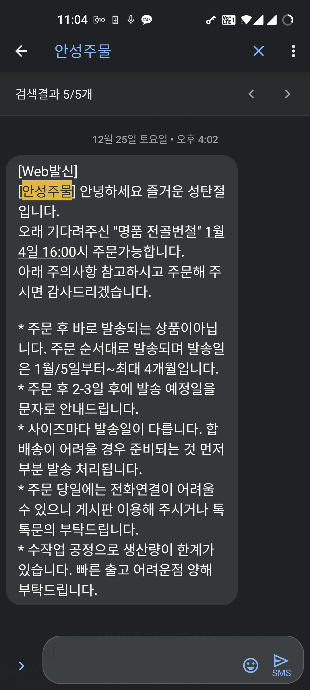 1월 6일에 1/17~1/21에 출고 예정이라는 문자 받음