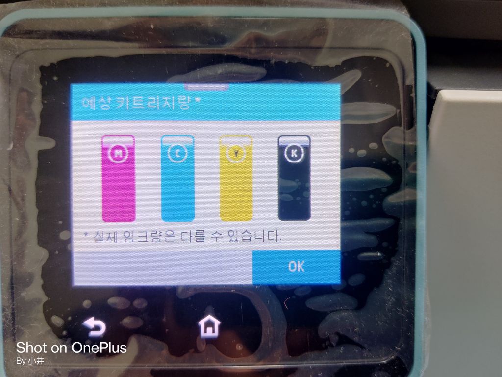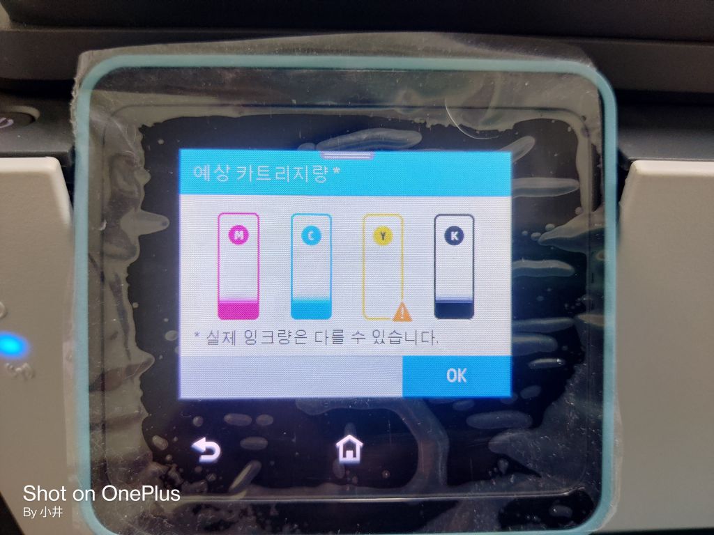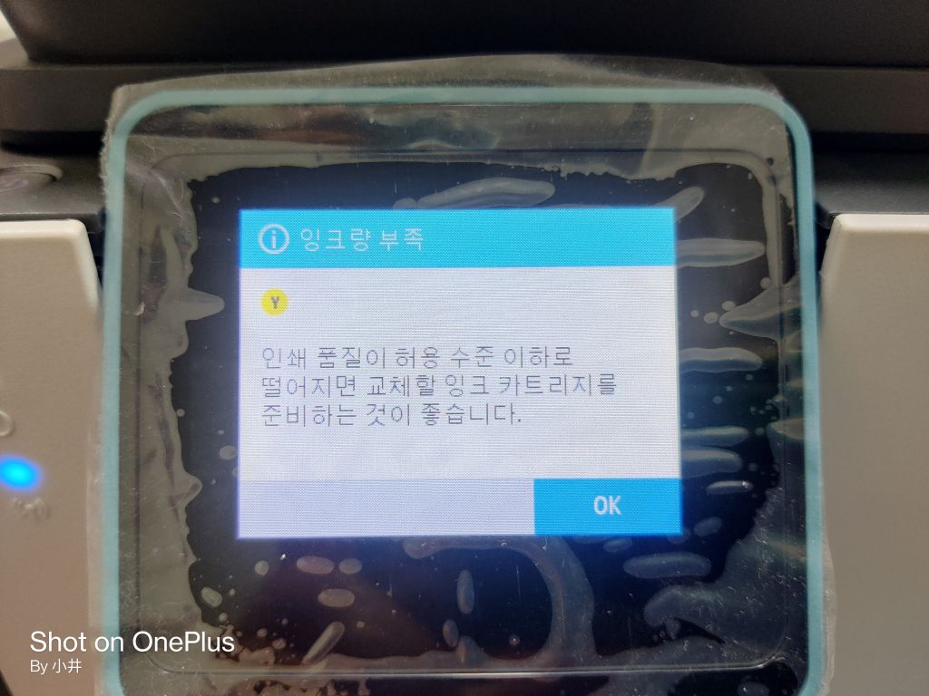 잉크가 다 떨어 졌지만 계속 사용을 할건지 확인을 받는걸 보니
