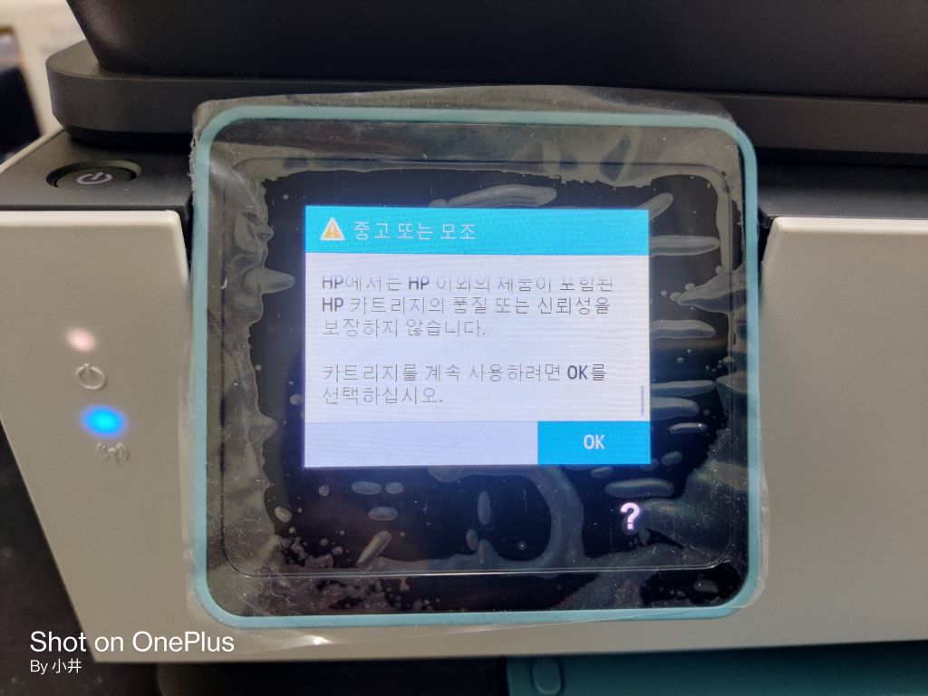 잉크가 다 떨어 졌지만 계속 사용을 할건지 확인을 받는걸 보니