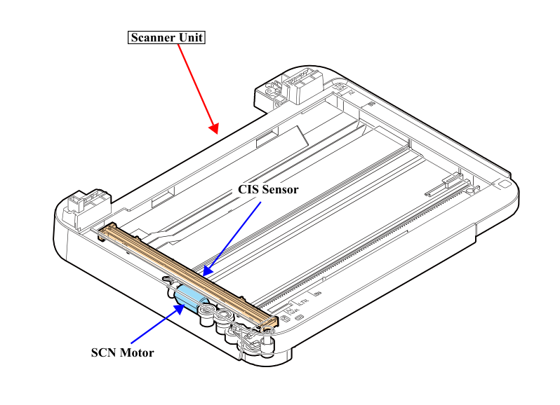 ● The SCN CR could not return to its home. 1. Damage or disengaging of Wheel Train of the Drive Mechanism 2. Disengaging, fraying, jumping of the Timing Belt ● Failed to read the white standard/home patterns. 3. Disconnection, break, skew or damage of the SCN FFC 4. Failure of the CIS Unit 5. Failure of the SCN Housing 6. Failure of the Main Board |