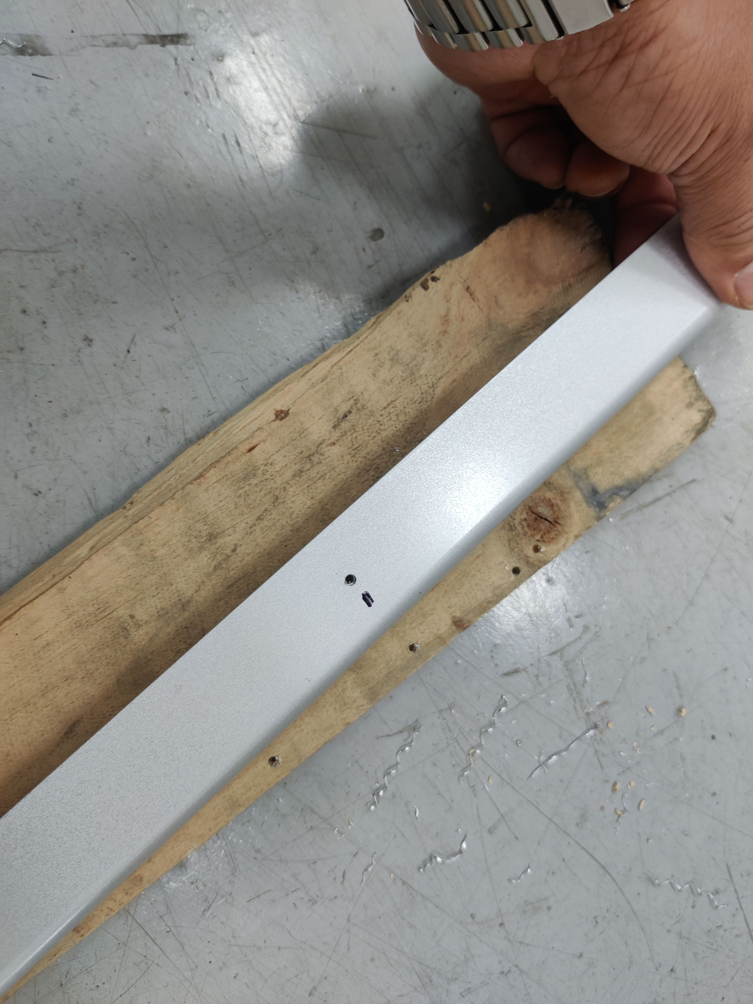 이제 어닝을 장착하기 위해 리벳을 박을 구멍을 뚫어야 할 차례입니다.