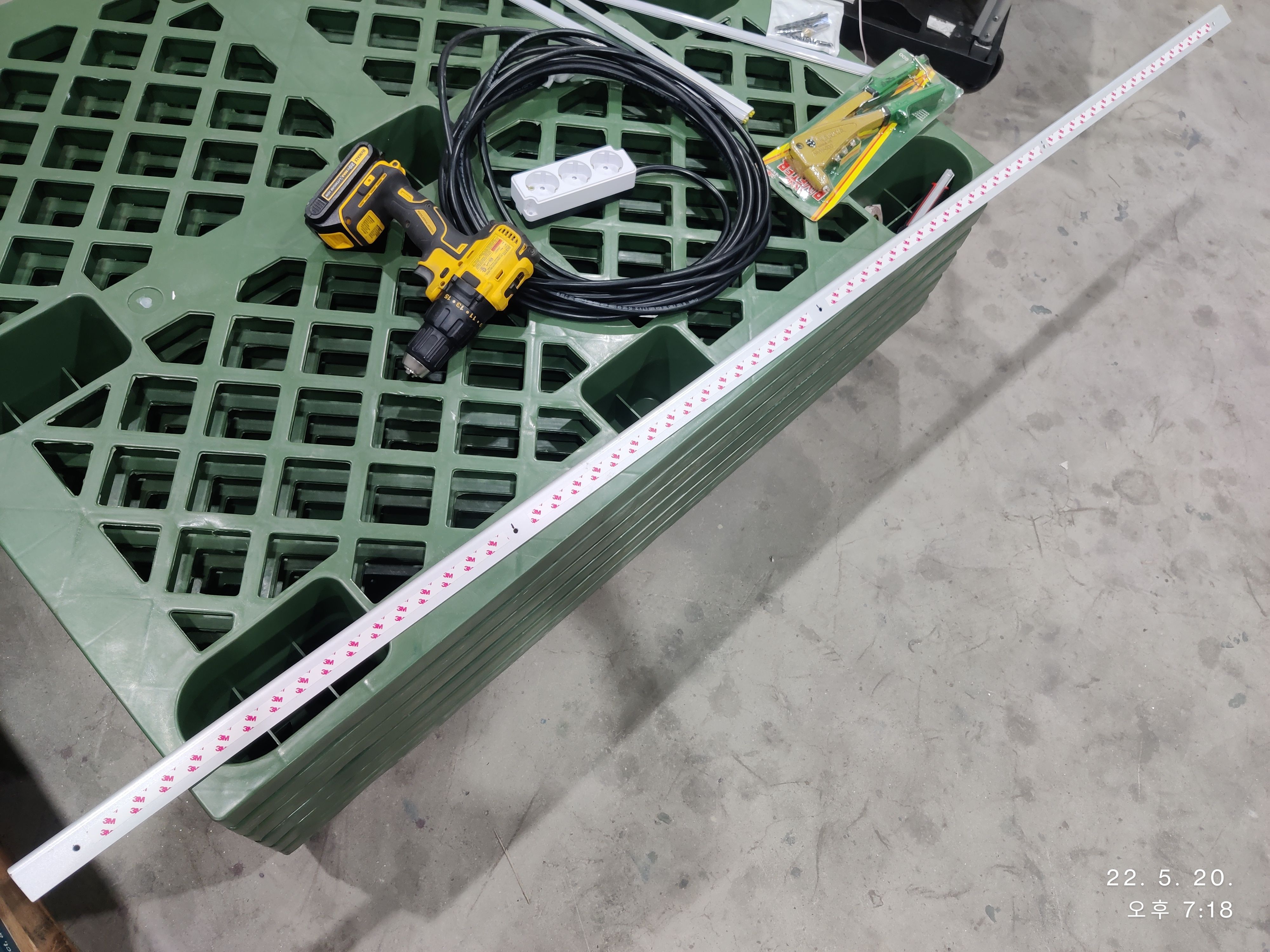 어닝 레일에 얇은 양면 테이프를 먼저 붙엿습니다.