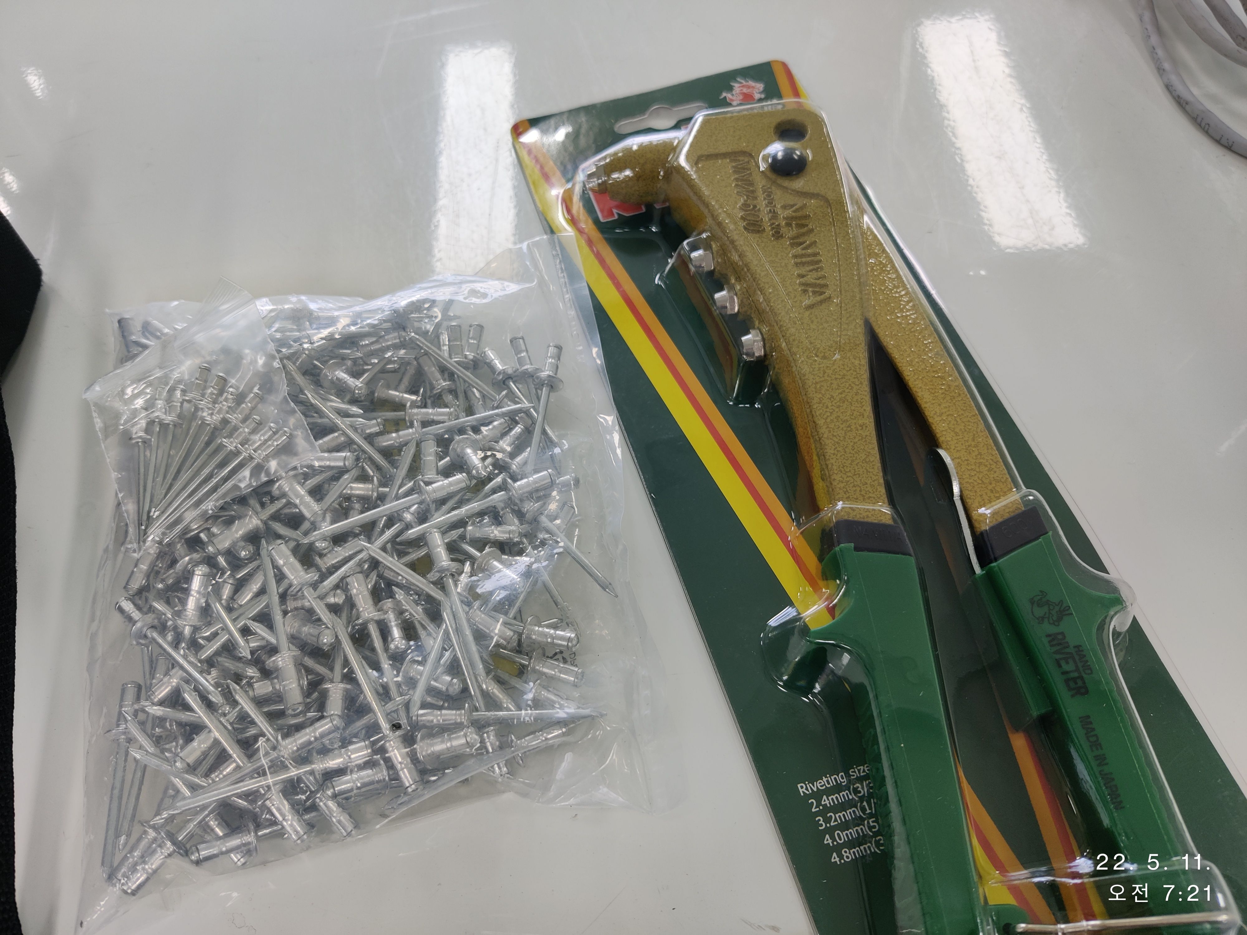 그리고,, 두번쨰 주문한 제품은 알루미늄 리벳과 레베터를 주문하였습니다..