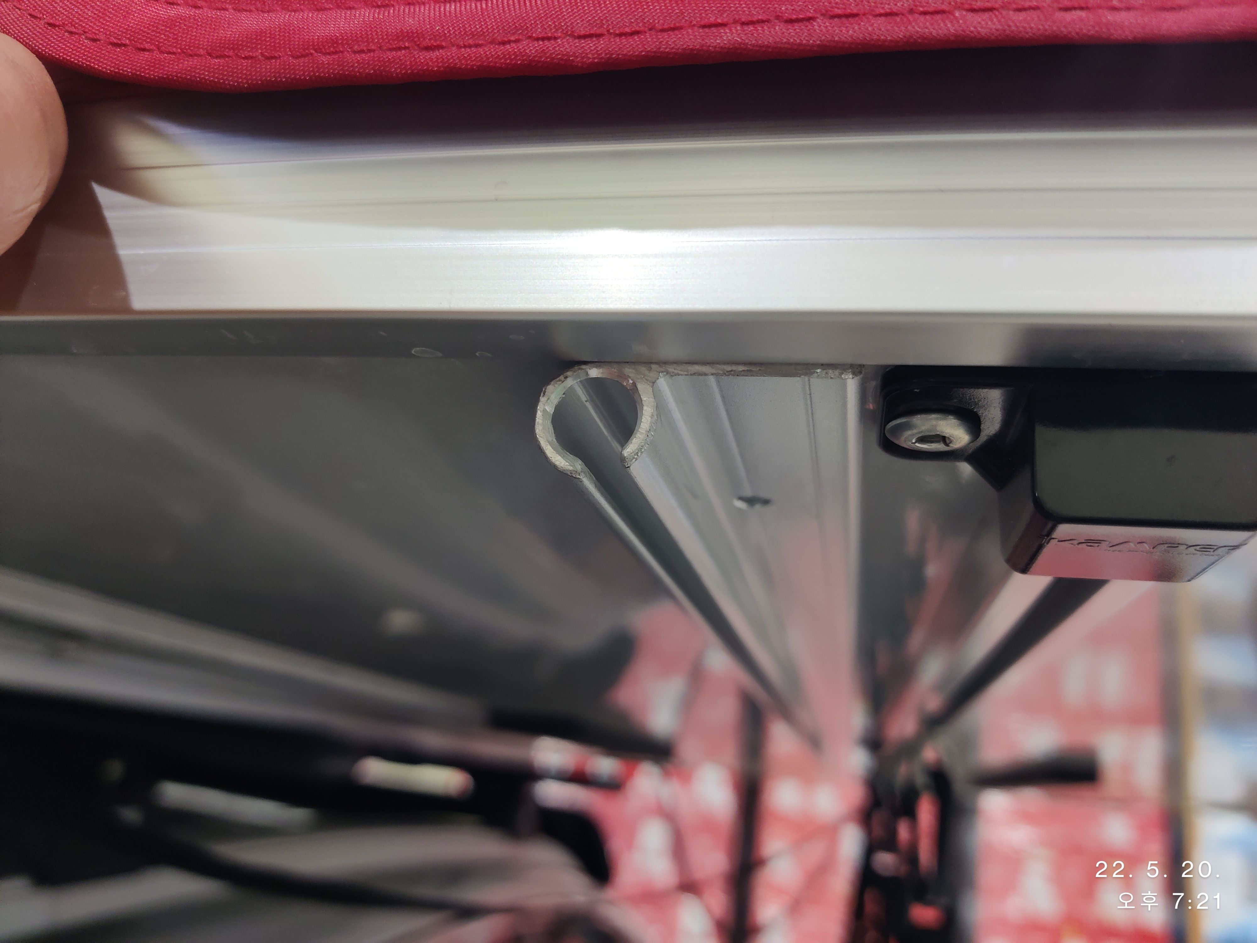 확장판 아래에 어닝 레일을 달기 위해 자리를 물색해 봅니다.