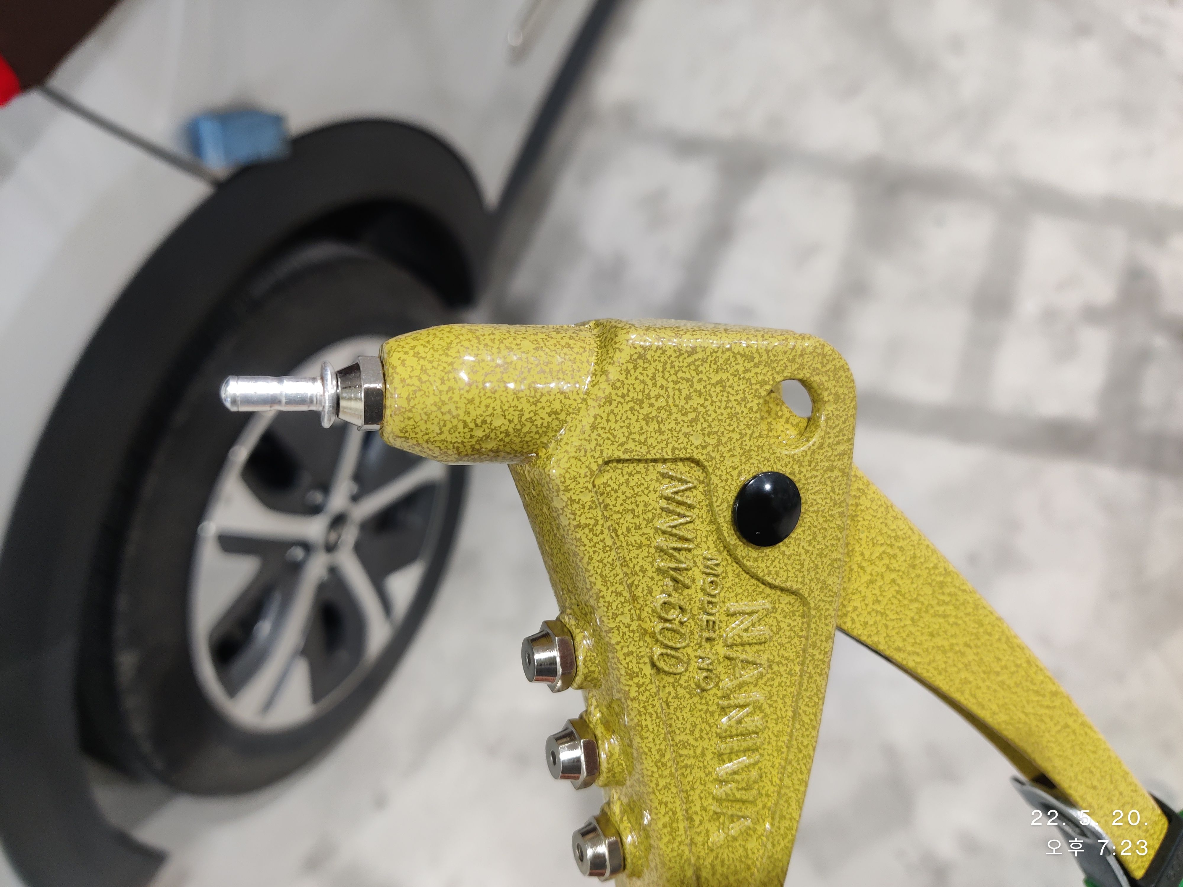 리벳건에 리벳을 하나 물린 후