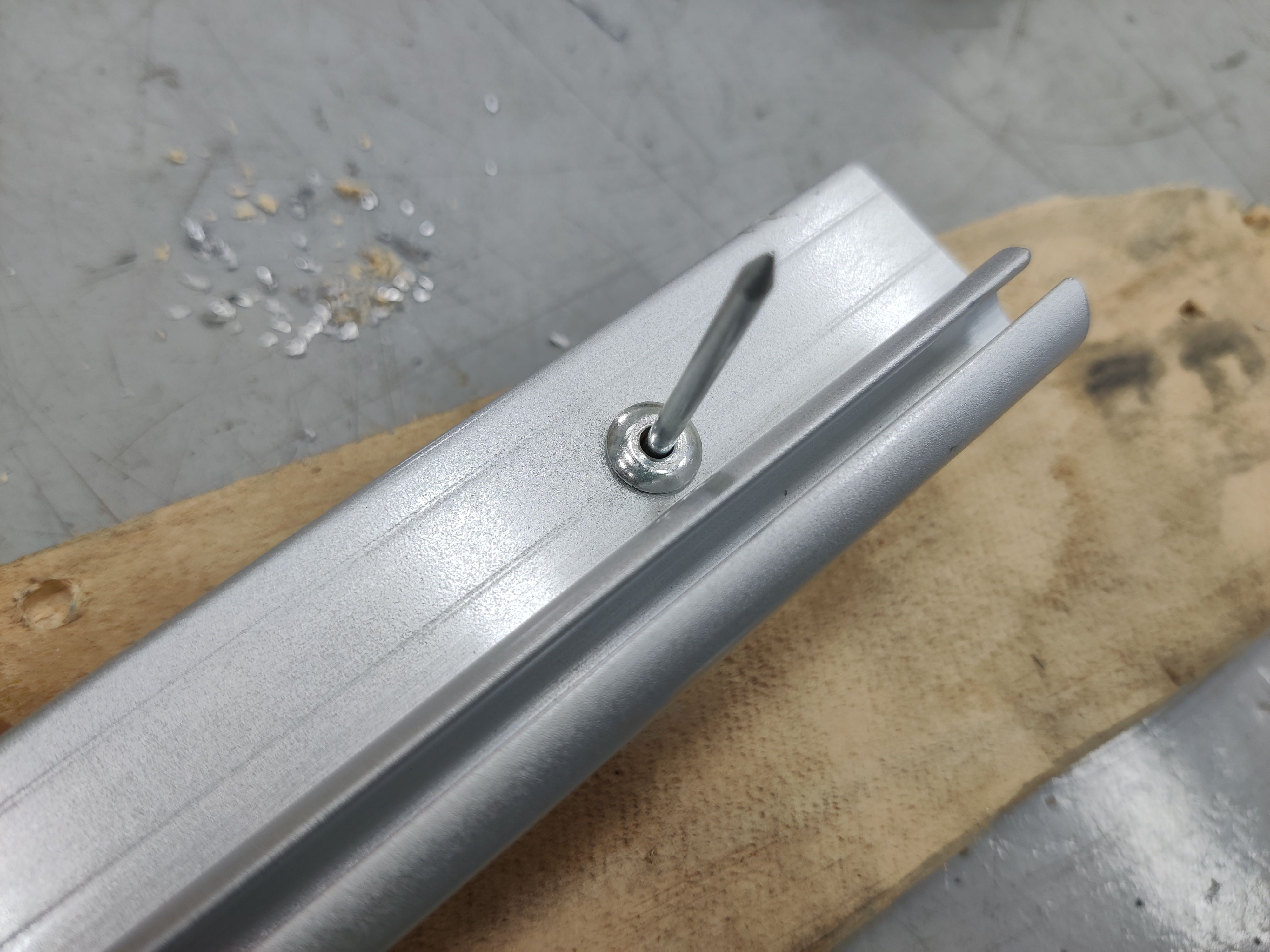 이제 어닝을 장착하기 위해 리벳을 박을 구멍을 뚫어야 할 차례입니다.
