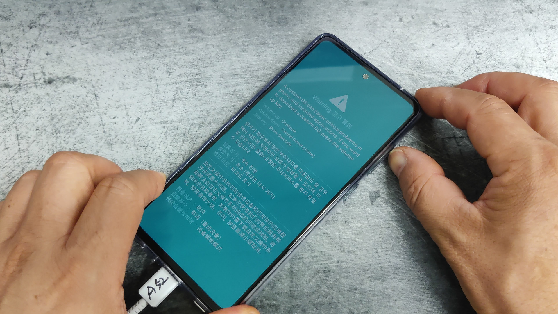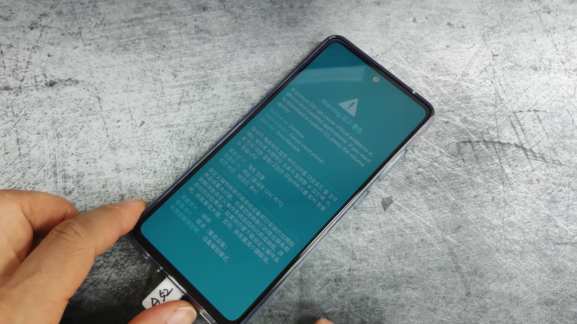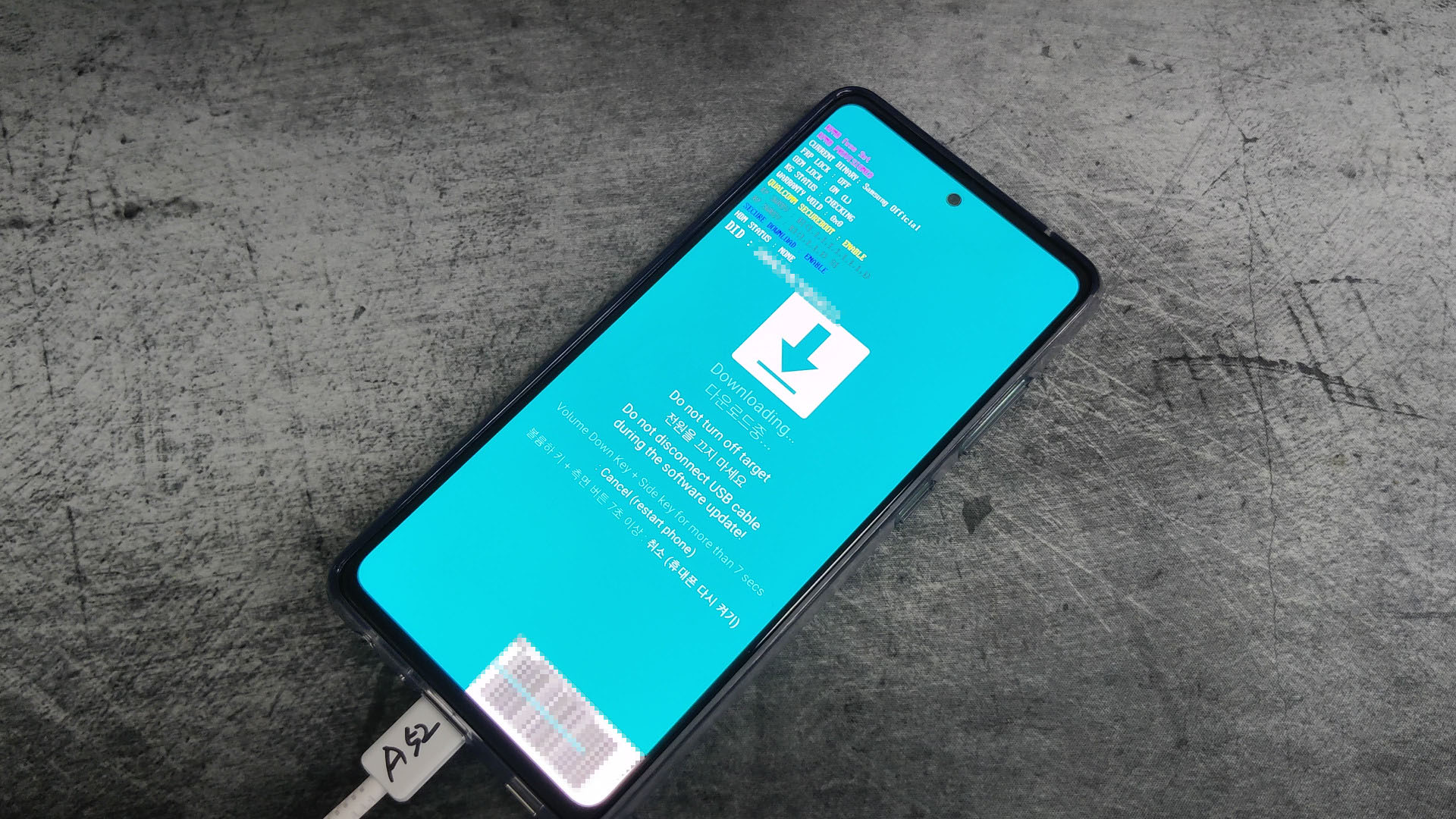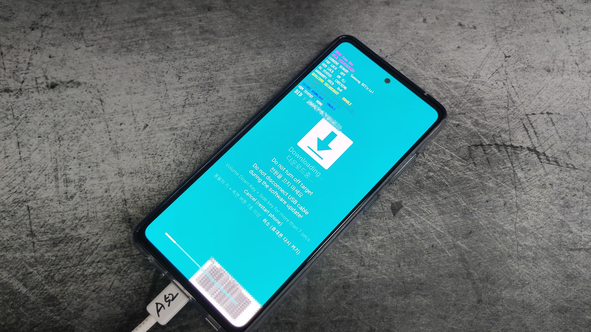 액정 화면이 다운로드 모드로 진입되고