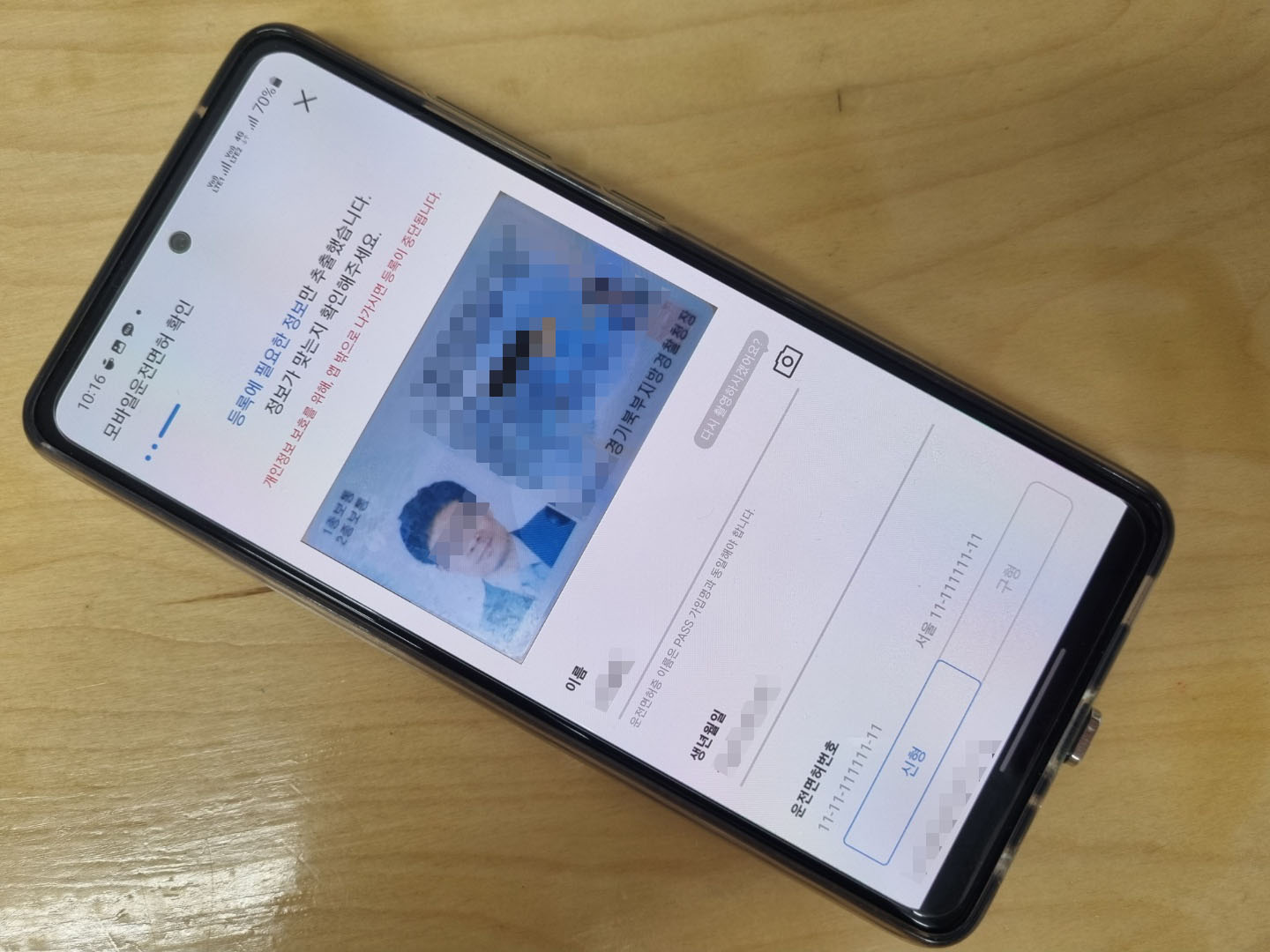 실제 운전면허증의 정보가 그대로 보이게 되네요.
