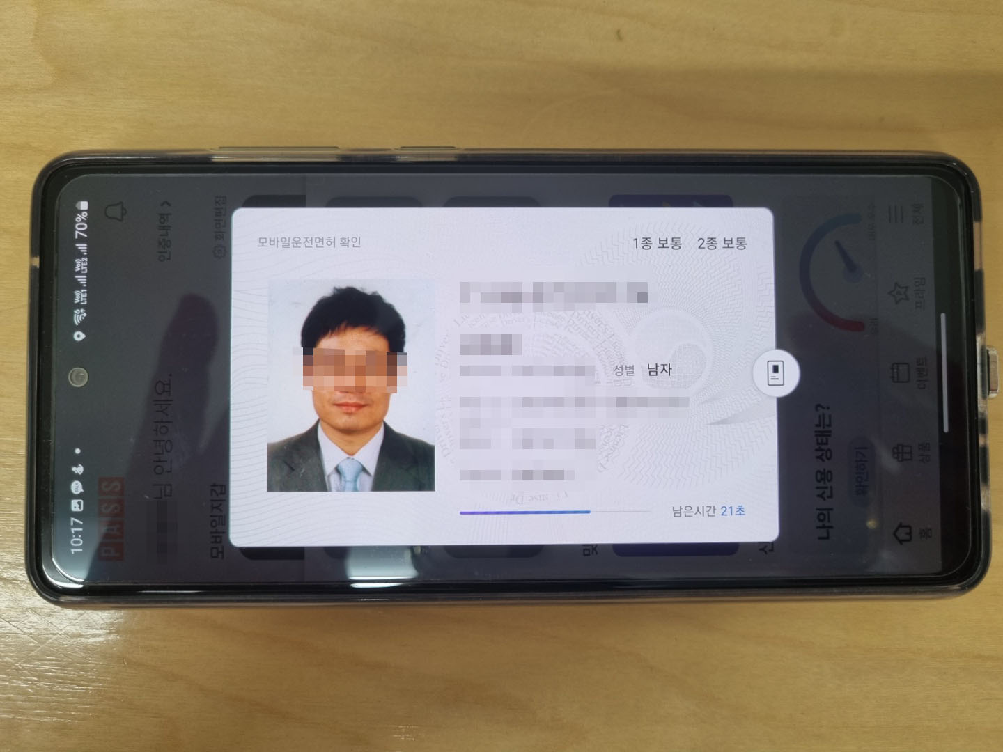 실제 운전면허증의 정보가 그대로 보이게 되네요.