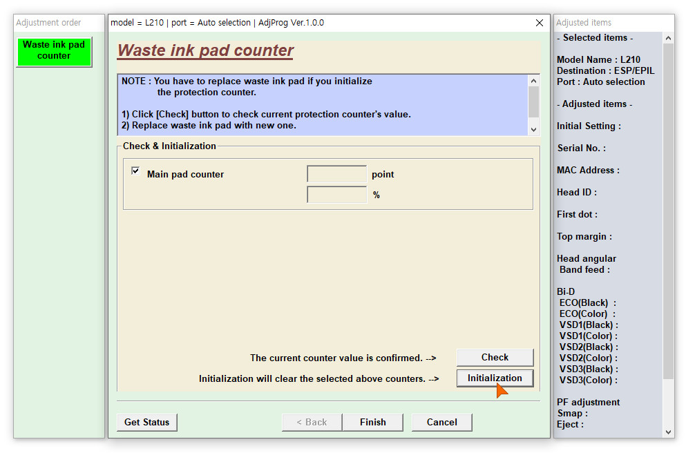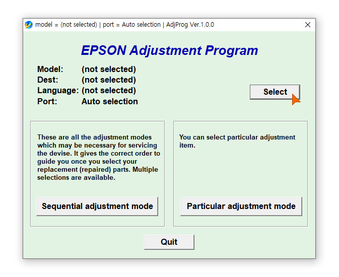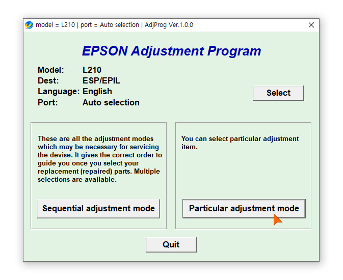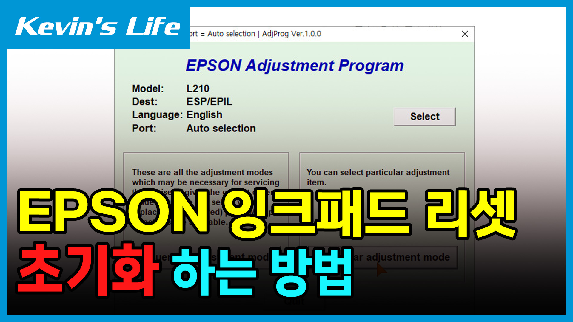 잉크레벨 초기화 하는 방법은 엡손 조정 프로그램이라는 EPSON Adjustment Program을 이용하여 진행됩니다.