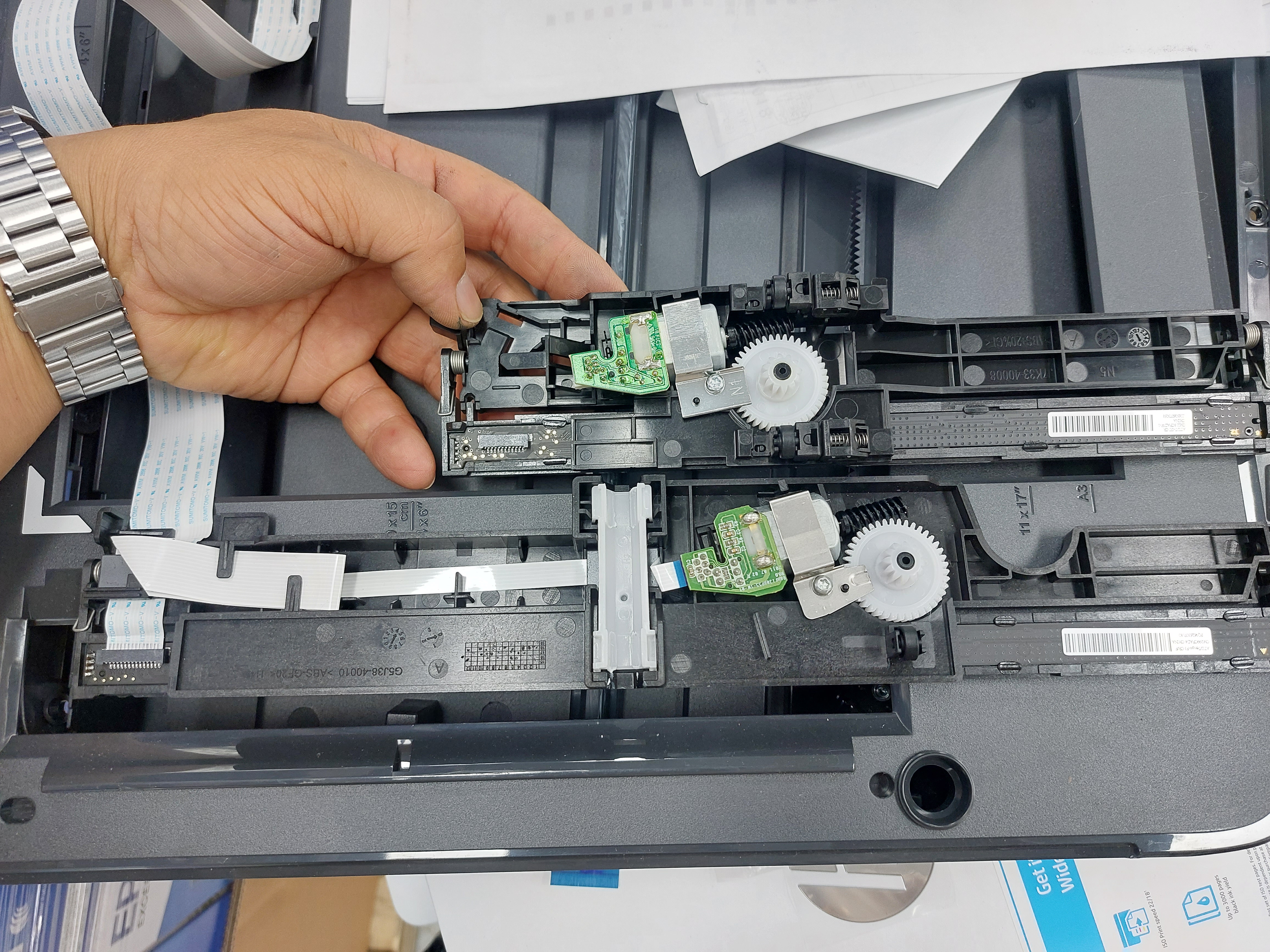 천천히 스캐너 바가 이동을 하고, 우측 끝에 다다르게 되면 뒤로 백Back 해서 스캐너 유닛이 자기 집으로 들어간 후