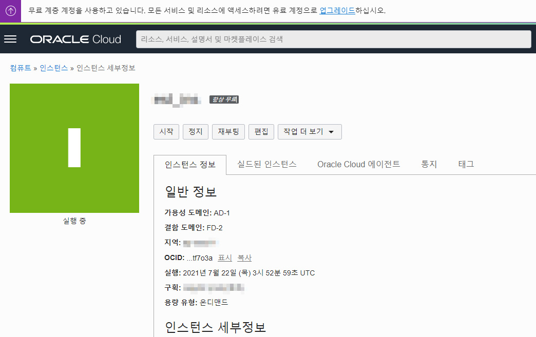 어제 제가 사용하는 오라클 클라우드가 시스템 재시작이 된 후