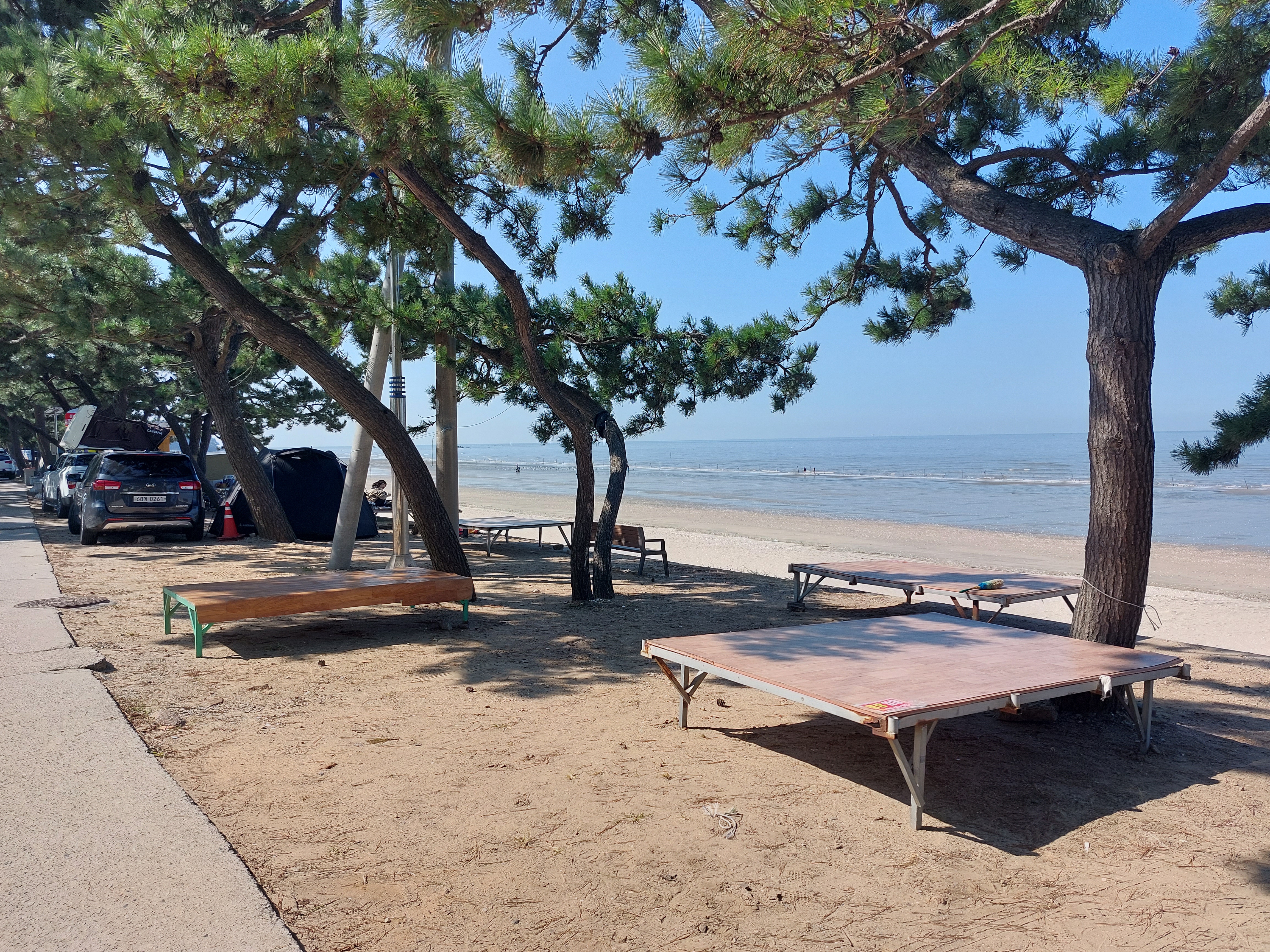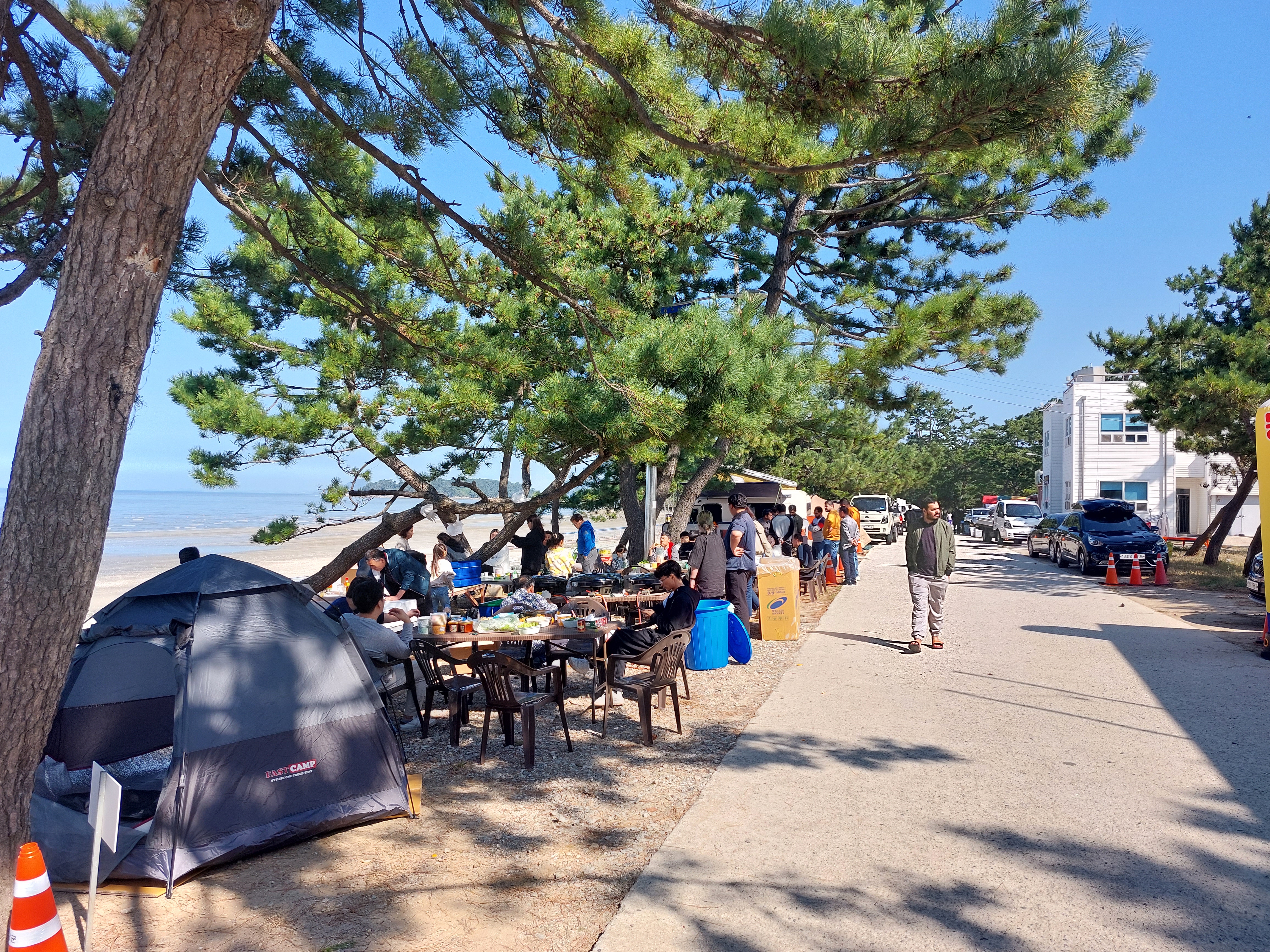 해수욕장 해변가에 텐트를 칠 수 있는 환경이 잘 되어 있습니다.
