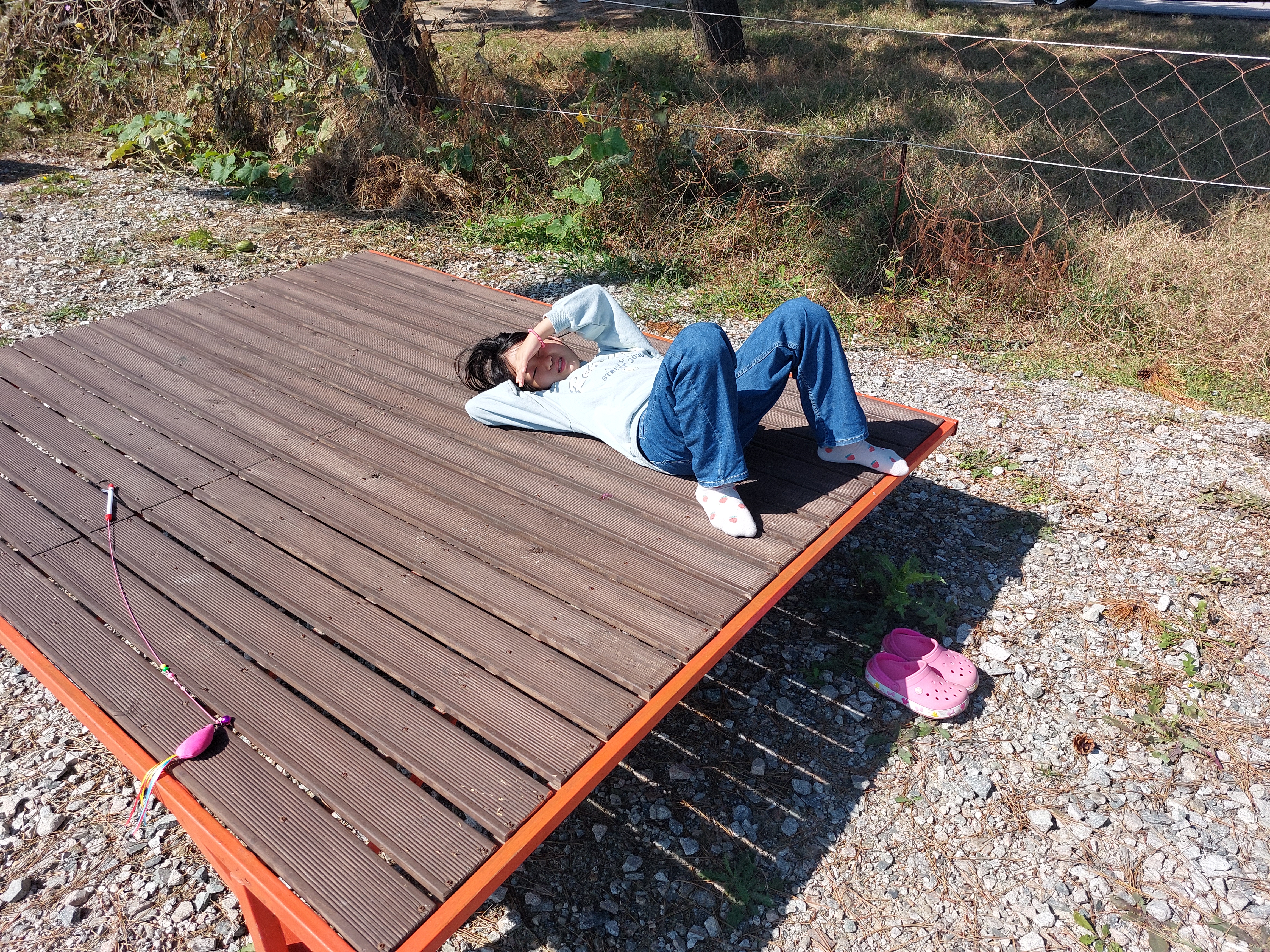 평상에 널부러진 딸냄 ! ㅋㅋ
